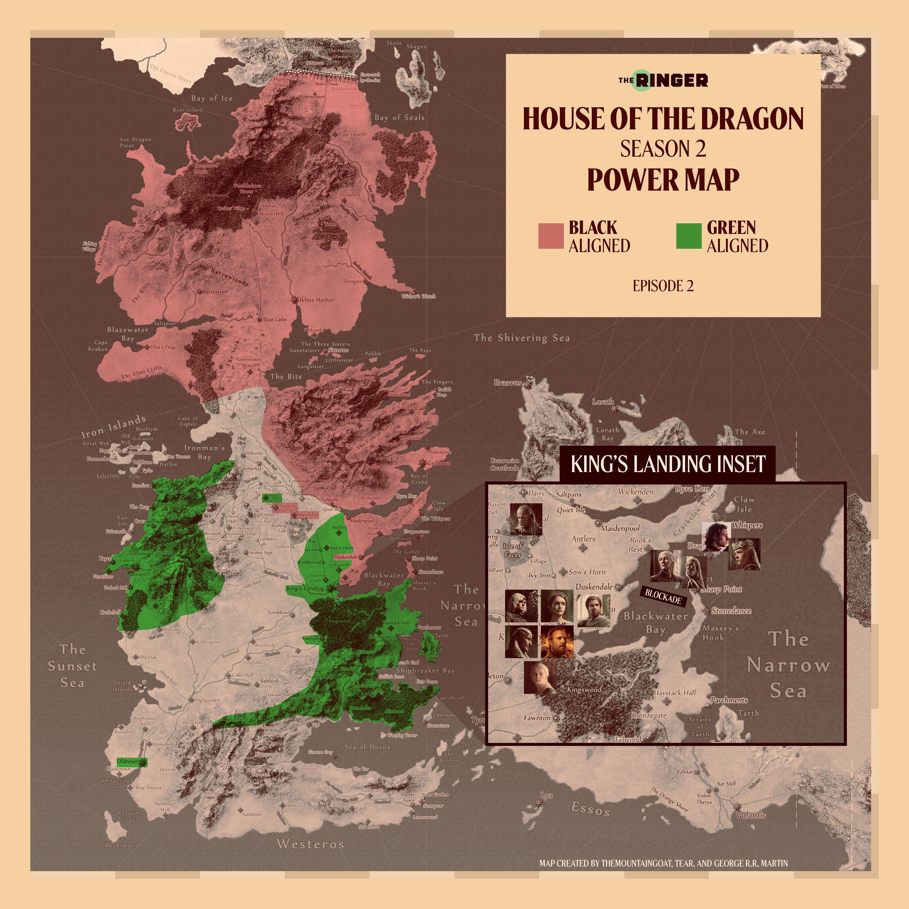 Daemon has taken Harrenhal. Criston is on his way there. Most of the other power players are sitting tight in King’s Landing or on Dragonstone. But with a few Riverlands houses declaring for each side, Westeros continues to get carved up. Here’s what the map looks like after Episode 3: