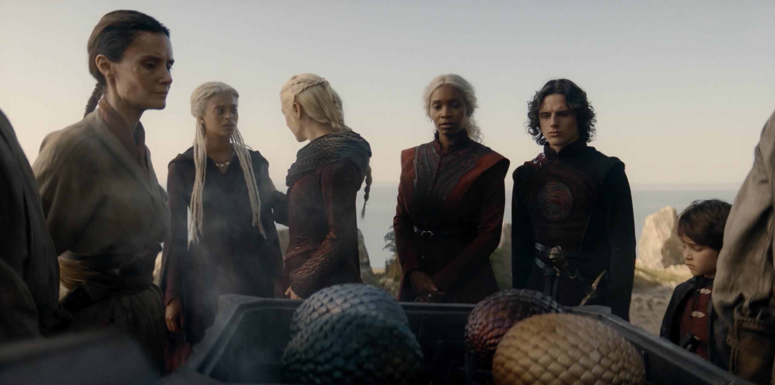 This week, Rhaenyra sends Rhaena and Joffrey to the Vale. She also sends four dragon eggs: