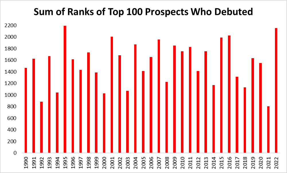 The red line has indeed dropped precipitously: The last time the first 400 games of a season (excluding <9-inning games) sped along like this was 1981. But the blue line’s swan dive puts the red line’s dip to shame. The last time the standard deviation of game length was this low was 1942, when wartime curfews were in effect, the cork and rubber used in baseballs were in short supply, and offense plummeted to levels not seen since the dead-ball era. To find another season with such consistent game times before that, you have to go back two additional decades, to 1922. Even then, more than a century ago, it was unusual for game times to feature so little variation. Not since the first decade of the 20th century, when runs were scarce, the setting of the sun imposed a nonnegotiable stopping point, and games took less than one hour and 50 minutes, on average, have game times been so dependable in consecutive seasons.