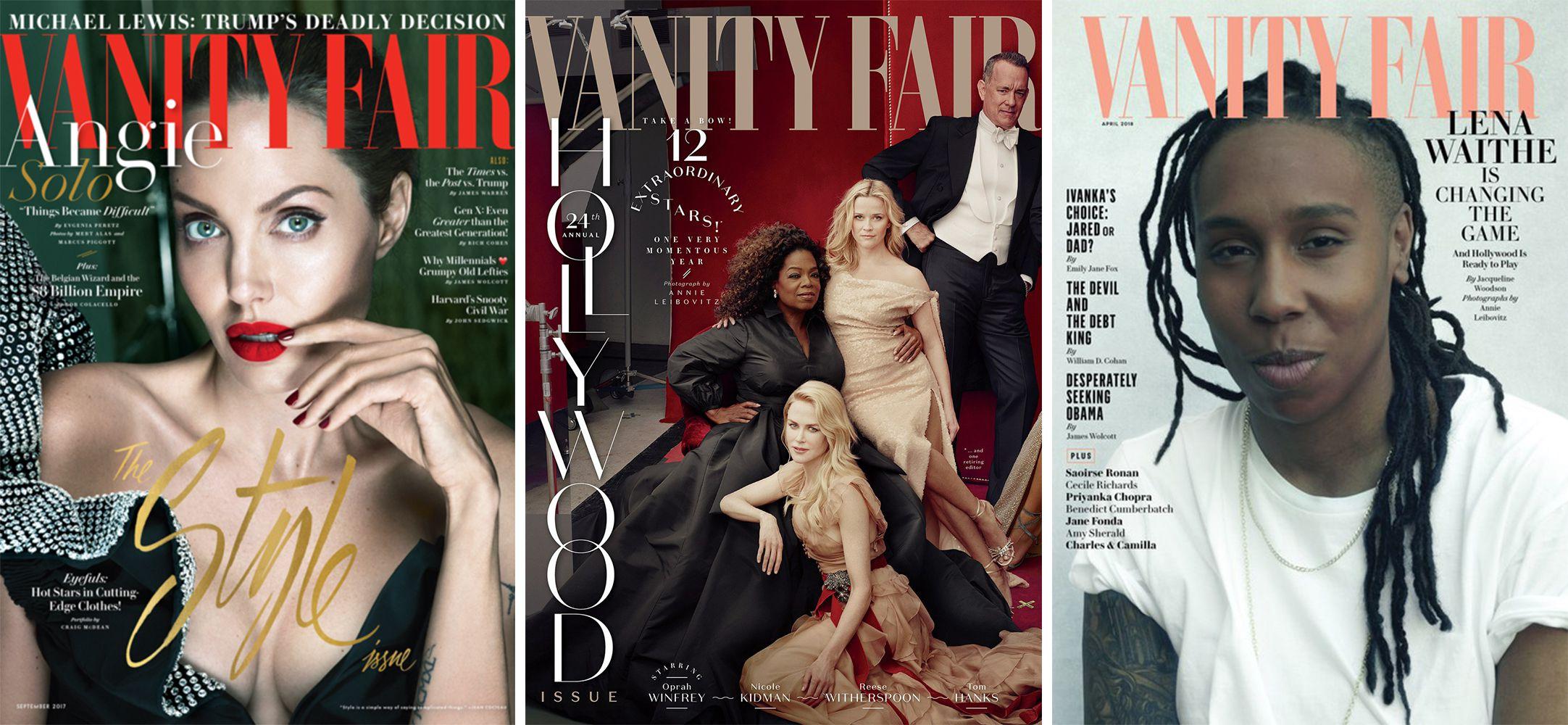 The transformation of Vanity Fair’s cover between the last issue overseen by Carter and the first issue featuring a subject booked under the leadership of new editor Radhika Jones is a useful example. The February 2018 issue oozed Old Hollywood: an Annie Leibovitz photo of 12 major celebrities (and Carter himself) dressed for a black-tie event, lounging against a backdrop that resembles a New York haunt like the Lambs Club. (The magazine has become so famous for this aesthetic that GQ recently mocked it in its June comedy issue.) Accross its dark-red background, thin, 1920s-style typography fills every pocket of free space. The April 2018 issue, starring Lena Waithe, features the writer, actress, and producer on the verge of a smile, in a simple white T-shirt from the waist up, against a white backdrop. Though she’s photographed by Leibovitz, the image is plain. Coverlines for other stories are written in a thin sans-serif font and shrunken to fit onto ends of the magazine and impossible to read from a distance; the logo is millennial pink. The image of Waithe is relatable, precisely because any reader might be able to imitate it with a white backdrop, a tripod, and an iPhone.
