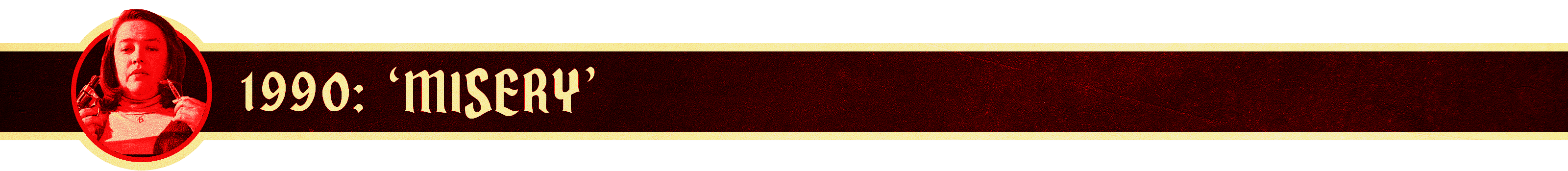 Simply put, Misery is the best King horror movie since The Shining and the last great one we’d get, arguably, ever. (I have a soft spot for The Mist, which came 27 years later, and, of course, there’s last year’s It.) Masterfully adapted by William Goldman, one of the five greatest screenwriters of all time, and directed as if inside James Caan’s skull by Rob Reiner. Reiner was just one year removed from When Harry Met Sally and one year away from A Few Good Men. (How’s that for a crowd-pleasing run?) And he uses practicality to make the movie so effective. There’s no evil, no zombies, no cursed MacGuffins, no serial killers—just a deranged lonely person and a self-regarding jerk. Together, they make terror.