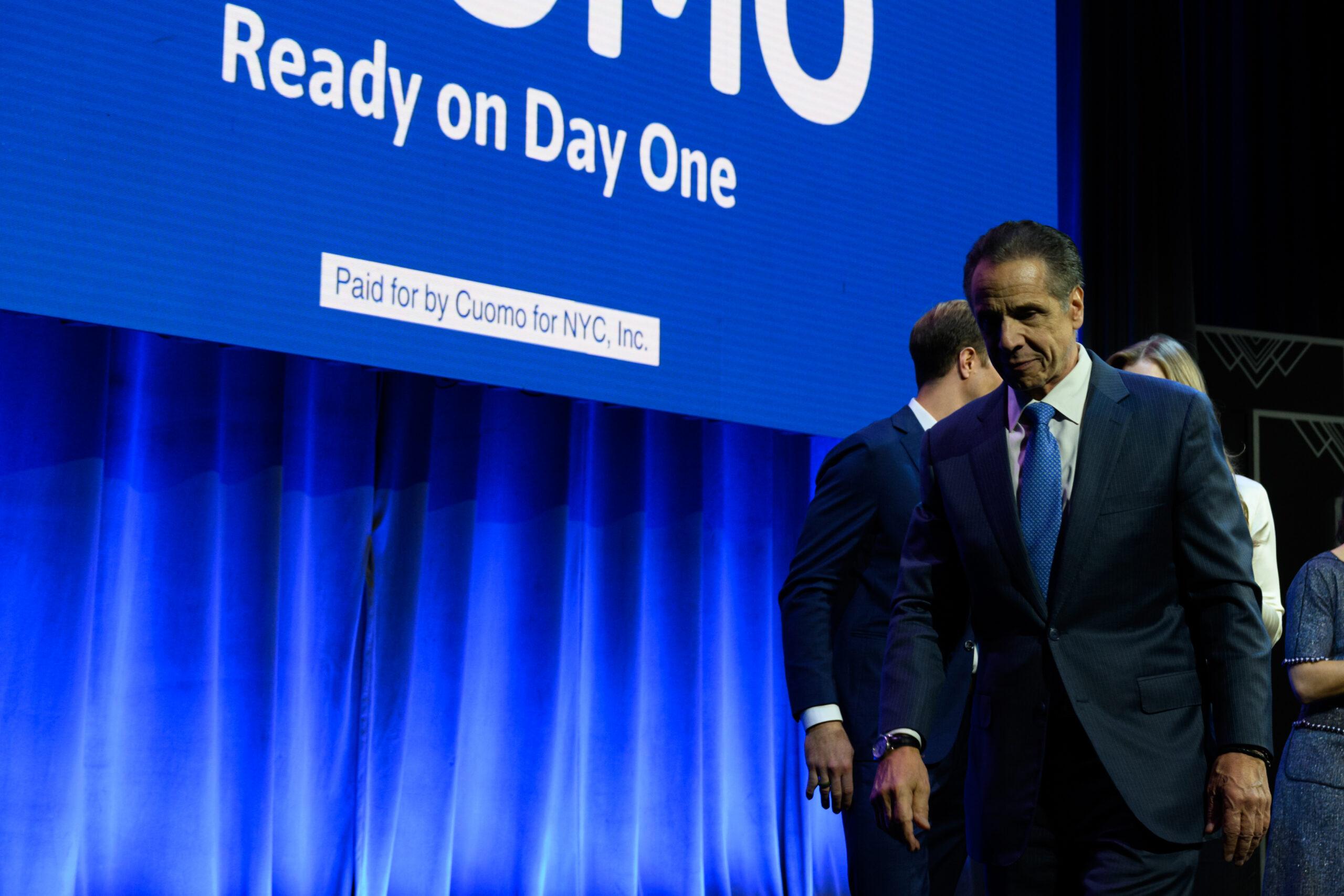 Andrew Cuomo leaves the stage after delivering his concession speech
