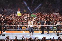 If nothing else, Cena was reliable, which is to say largely predictable, and to many fans that was unacceptable. At WrestleMania 22, he was booed loudly in a match against Triple H of all people, one of the most straightforwardly villainous stars of the era. When Cena made his shocking return from a torn pectoral muscle (months ahead of the scheduled recovery date) at the Royal Rumble in 2008, the diehard crowd at Madison Square Garden—largely the same folks who had been at the ECW One Night Stand match in ’06—went nuts. Because that, contrary to everything we thought we knew about him, was a real surprise. Cena’s yearslong feud with The Rock that headlined WrestleMania 28 and 29 was a passing of the torch from the previous generation to the current one, but more importantly it was Cena’s only big-time opportunity to work as the home team, with Rock leaning into Hollywood entitlement. It’s telling that over the past year, with Cena returning from his own Hollywood career to bid farewell to WWE, he’s finally gotten universal cheers.