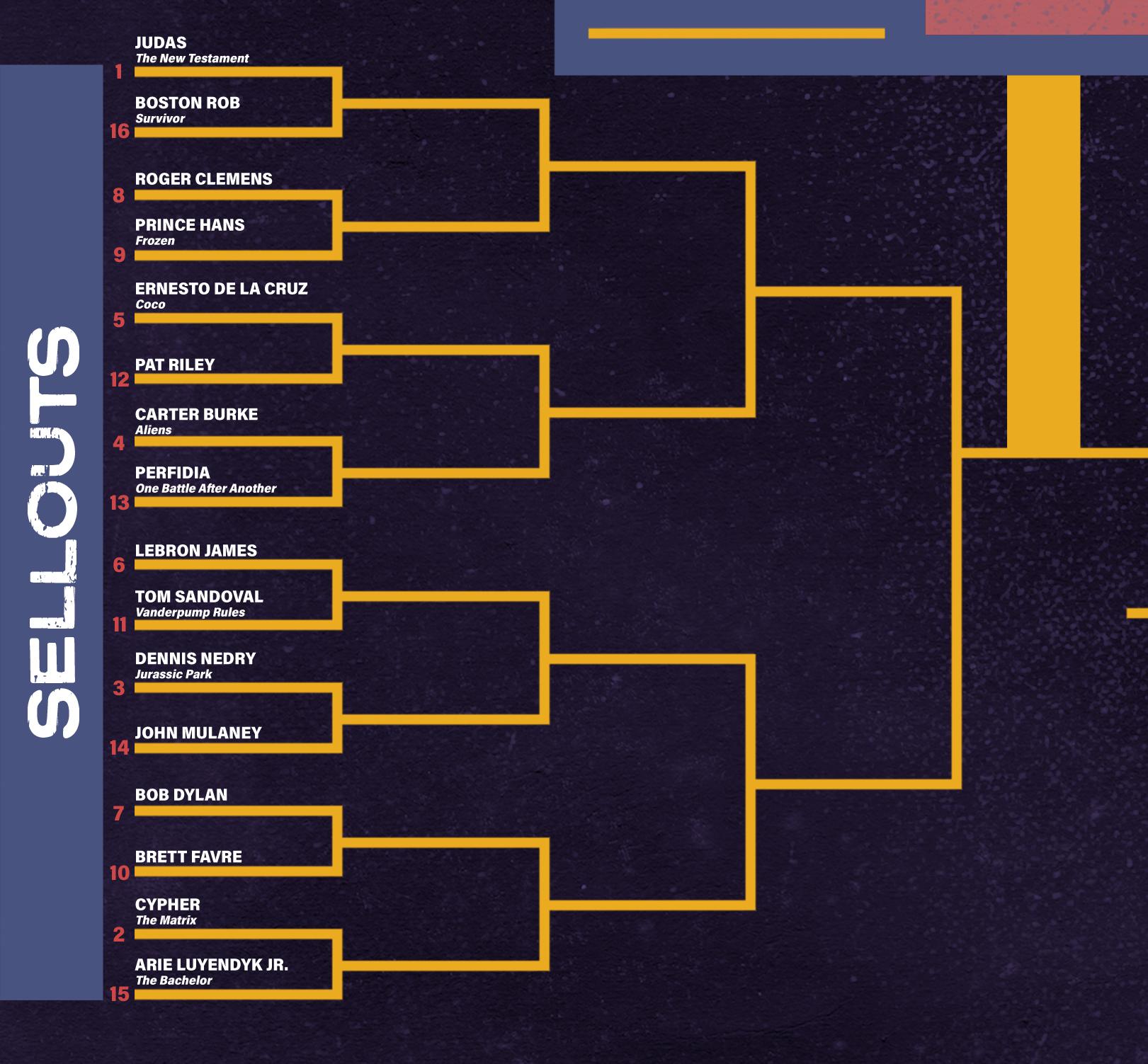 To gather the contestants for this competition, we cast a wide net across the realms of pop culture, sports, history, and mythology to assemble a legion of all-star traitors whose misdeeds have stood the test of time. In total, our staff submitted well over 200 nominations. It was impossible (and less fun) to account for every heinous Quisling in the book, so our final pool tends to prioritize instantly recognizable figures who linger in popular lore.