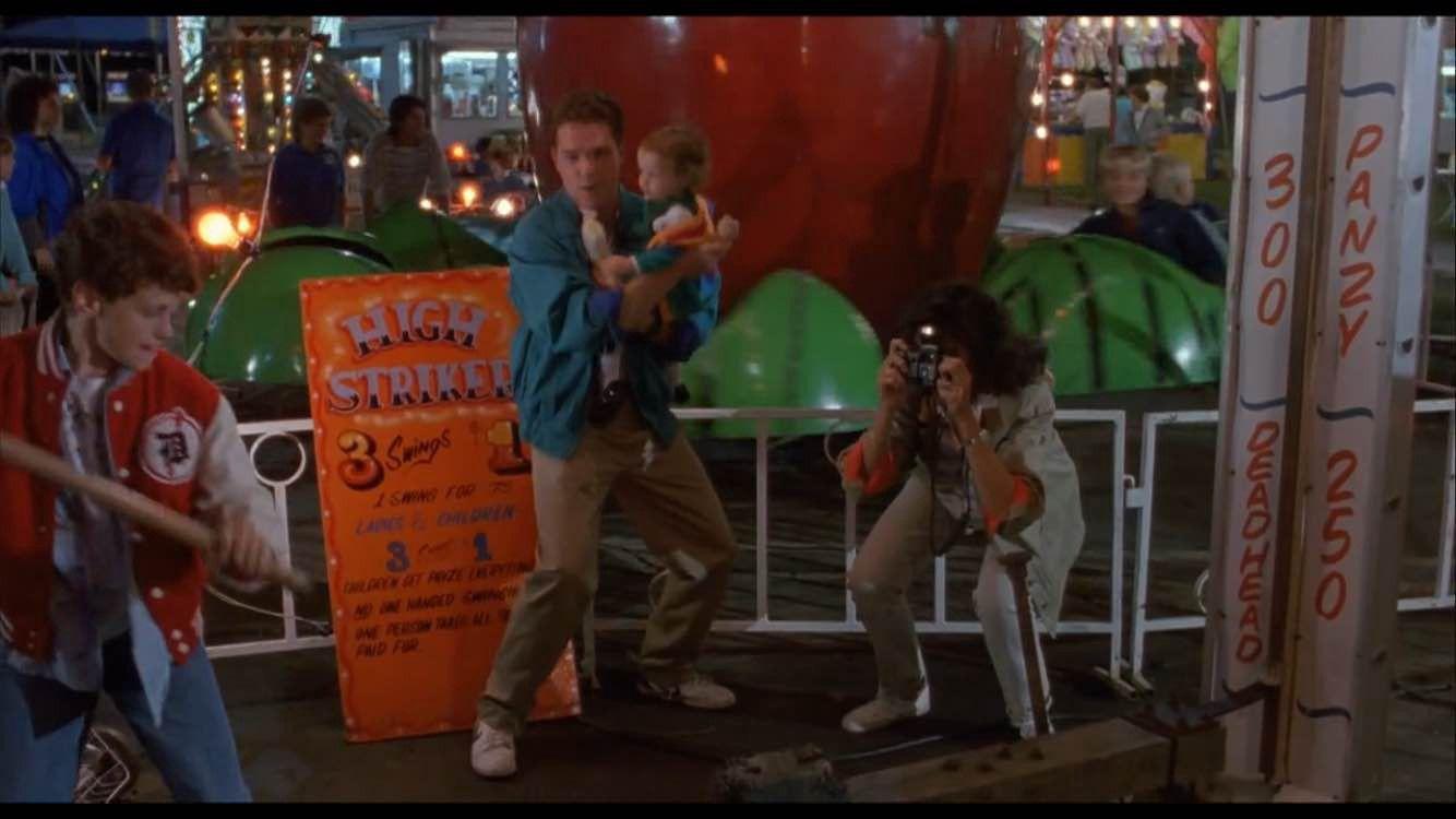 Even the movie’s happy ending is just another obstacle for Mrs. Baskin. Josh makes his wish into the “Zoltar Speaks” machine to be a kid again, then rides over to his mom’s house with Susan. They’re sitting in the car having a halfway-sweet, halfway-weird moment, and then he gets out, begins walking toward his house, then morphs back into a kid before he gets to the door, losing his shoes as he walks on account of them being several sizes too big. All things told, it’s a great scene, and a really moving thing to get to see him be a kid again.