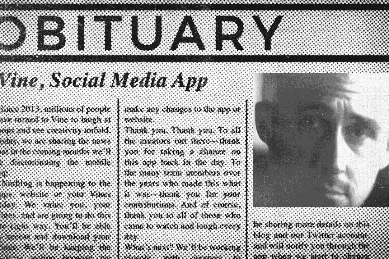 Here lies our deeply beloved Vine, a four-year-old video platform that was too perfect for the internet. The app was pronounced dead at approximately 12:10 p.m. ET this afternoon, via the traditional means for putting down a withering social network: a surreptitious and brief Medium post. Cause of death: lack of money.