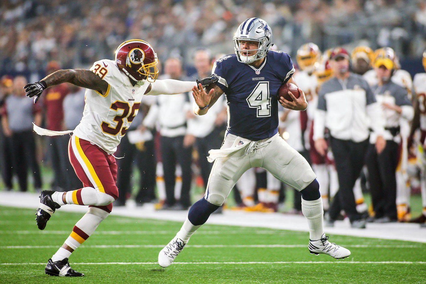 His final strike to Bryant came on a third-and-9, on the run, with Washington’s Su’a Cravens spying the quarterback and bearing down on him. Prescott’s touchdown run earlier in the fourth quarter happened on a designed rollout that forced safety Duke Ihenacho to choose between covering tight end Jason Witten and keeping Prescott out of the end zone. Much like using read plays near the goal line, the Cowboys can employ designed rollouts — which are only possible because of Prescott’s mobility — to shift the math in their favor when the field shrinks.