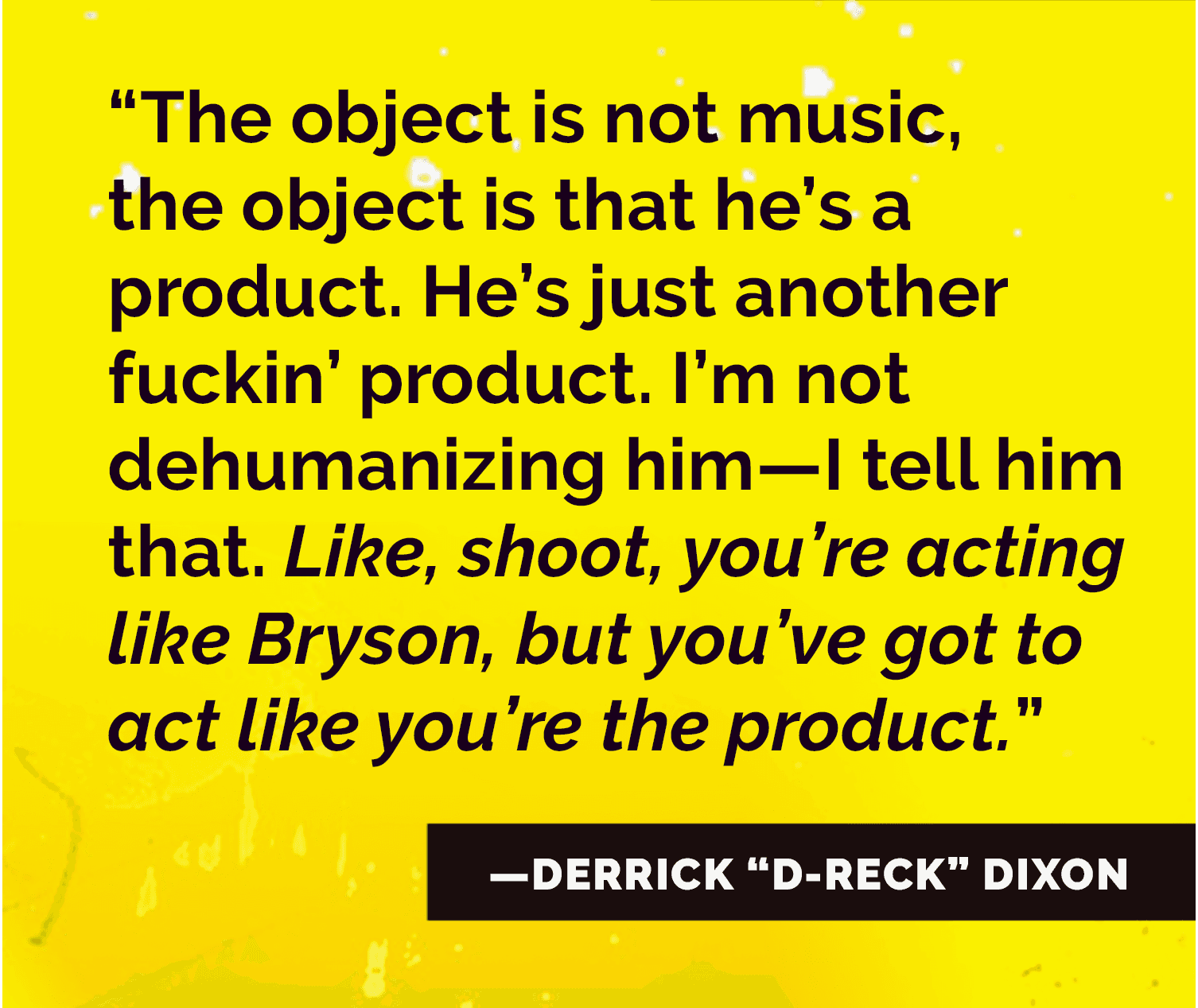 The way Team Bryson talks about their plan toggles between bleakly transactional and refreshingly honest. "The object is not music, the object is that he’s a product," Dixon said. "He’s just another fuckin’ product. I’m not dehumanizing him — I tell him that. Like, shoot, you’re acting like Bryson, but you’ve got to act like you’re the product."