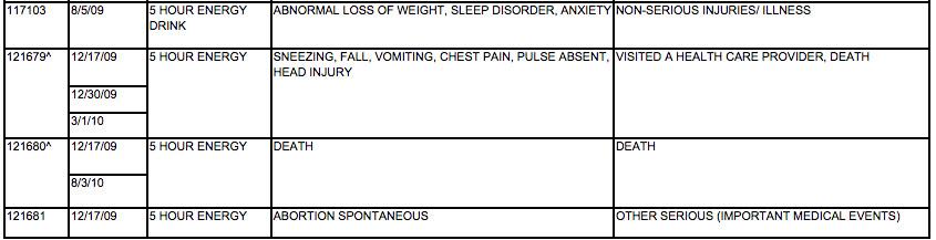 5-Hour has been involved in plenty of other controversies, many focused on whether or not it actually gives consumers five hours, or any hours, of energy. It was mentioned in 13 death reports from 2009 to 2012, according to death reports collected by the Food and Drug Administration, as well as 90 overall FDA filings on adverse effects during the same time frame, including reports of convulsions, renal failure, and one report of a miscarriage.