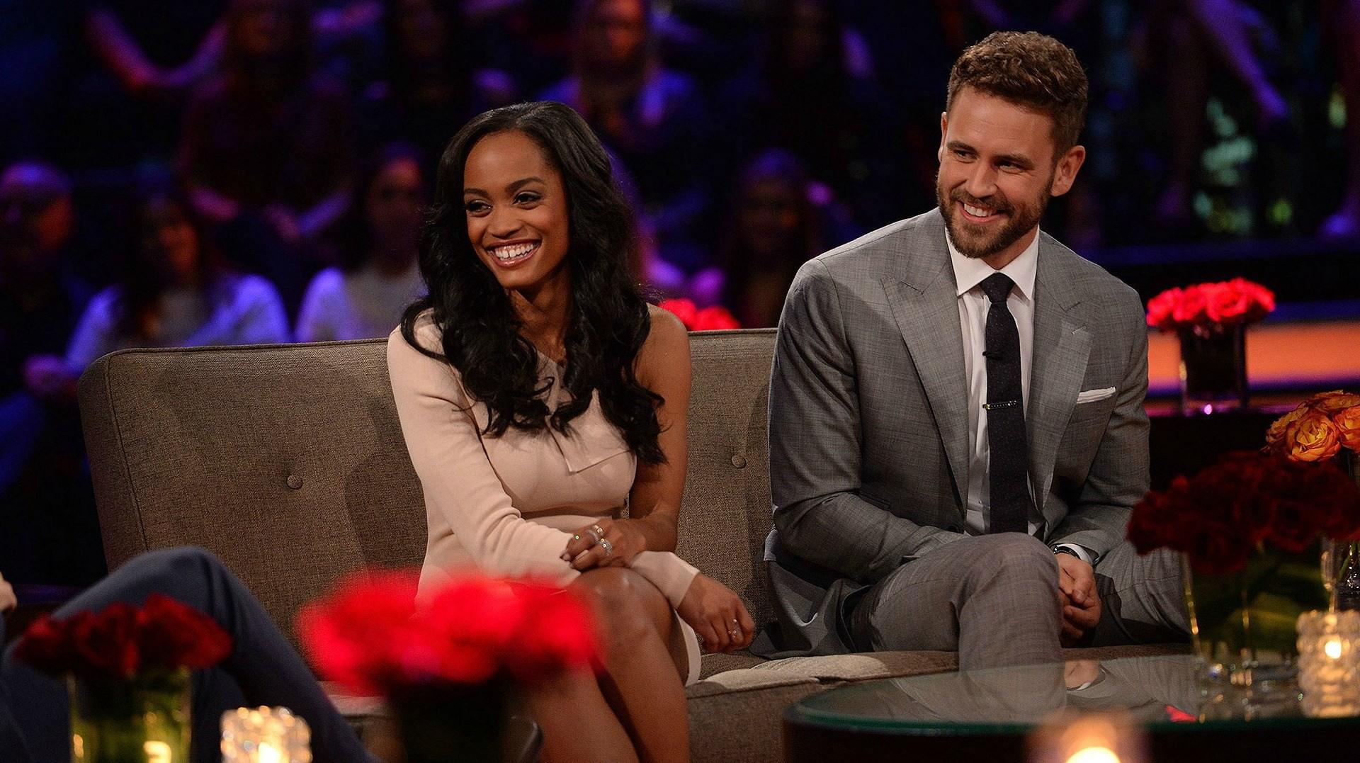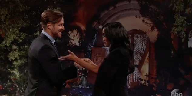With the passing out of the final rose comes the passing of the torch. Monday night, after Nick Viall proposed to Vanessa Grimaldi and a lackluster “After the Final Rose” ceremony, Rachel Lindsay took the reins of the franchise and officially began her time as the Bachelorette. Perhaps in order to quickly erase any memory of Nick and Vanessa’s awkward “love” affair, ABC broke protocol (the network is wildin’ out these days!) and started Rachel’s journey right away, recreating the Bachelor mansion driveway on a soundstage and introducing Rachel to four of her suitors. Chris Harrison’s repeated promise that this event would be “the most historic moment in Bachelor history” was somewhat overstated, but still, what a surprise! Nick “I subjected you to this four times” Viall who?