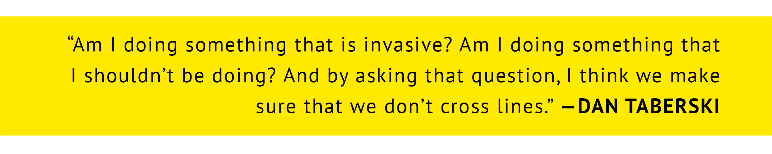 What keeps you from crossing the line, or even edging into gray areas?