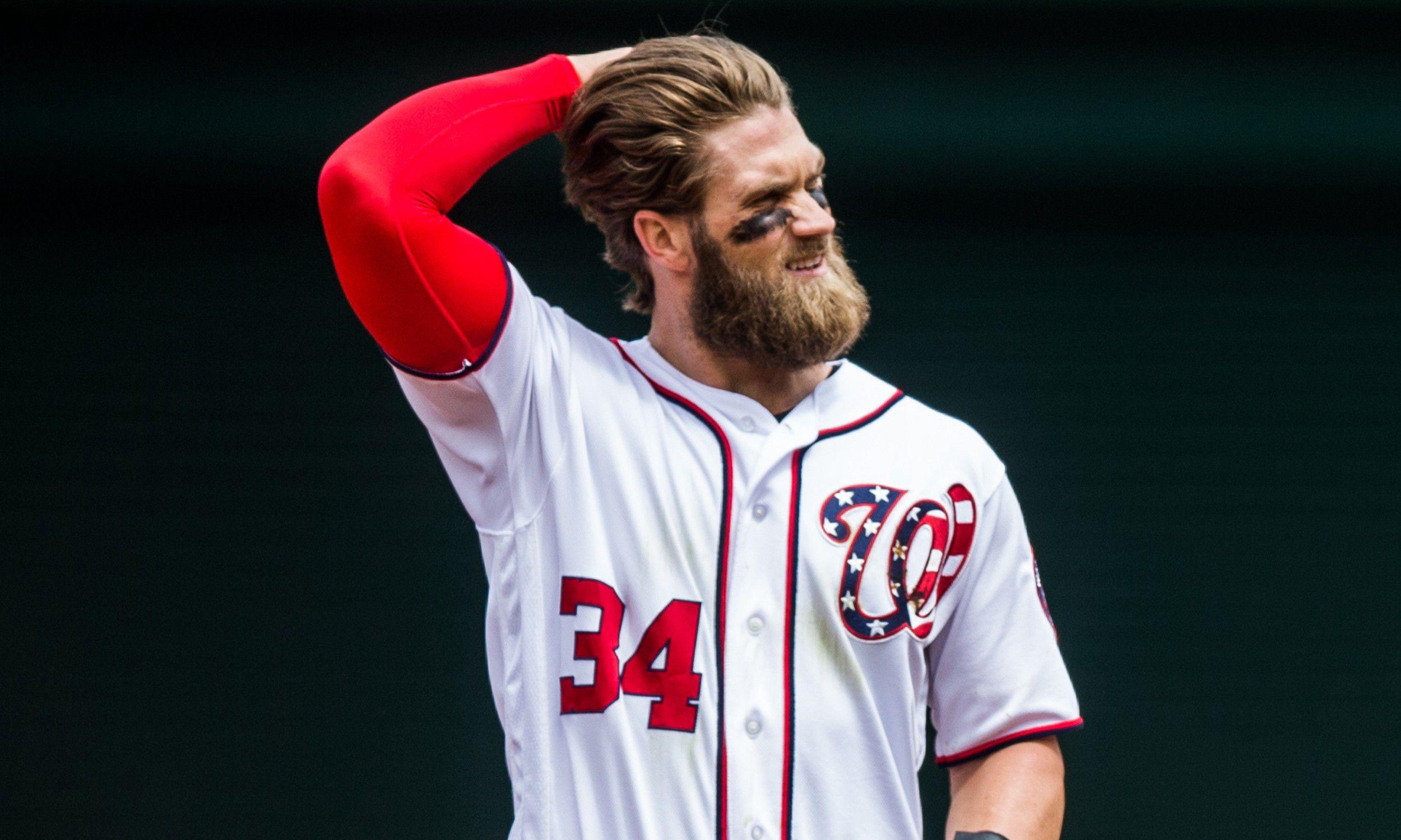 Harper shattered that illusion. His straight, brown hair positively glows, and it’s as thick as the wool on a renegade sheep. Thanks for ruining it for the rest of us, Bryce.