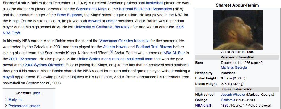 Until March 2016, this was the main picture on the Wikipedia page for onetime All-Star Shareef Abdur-Rahim: