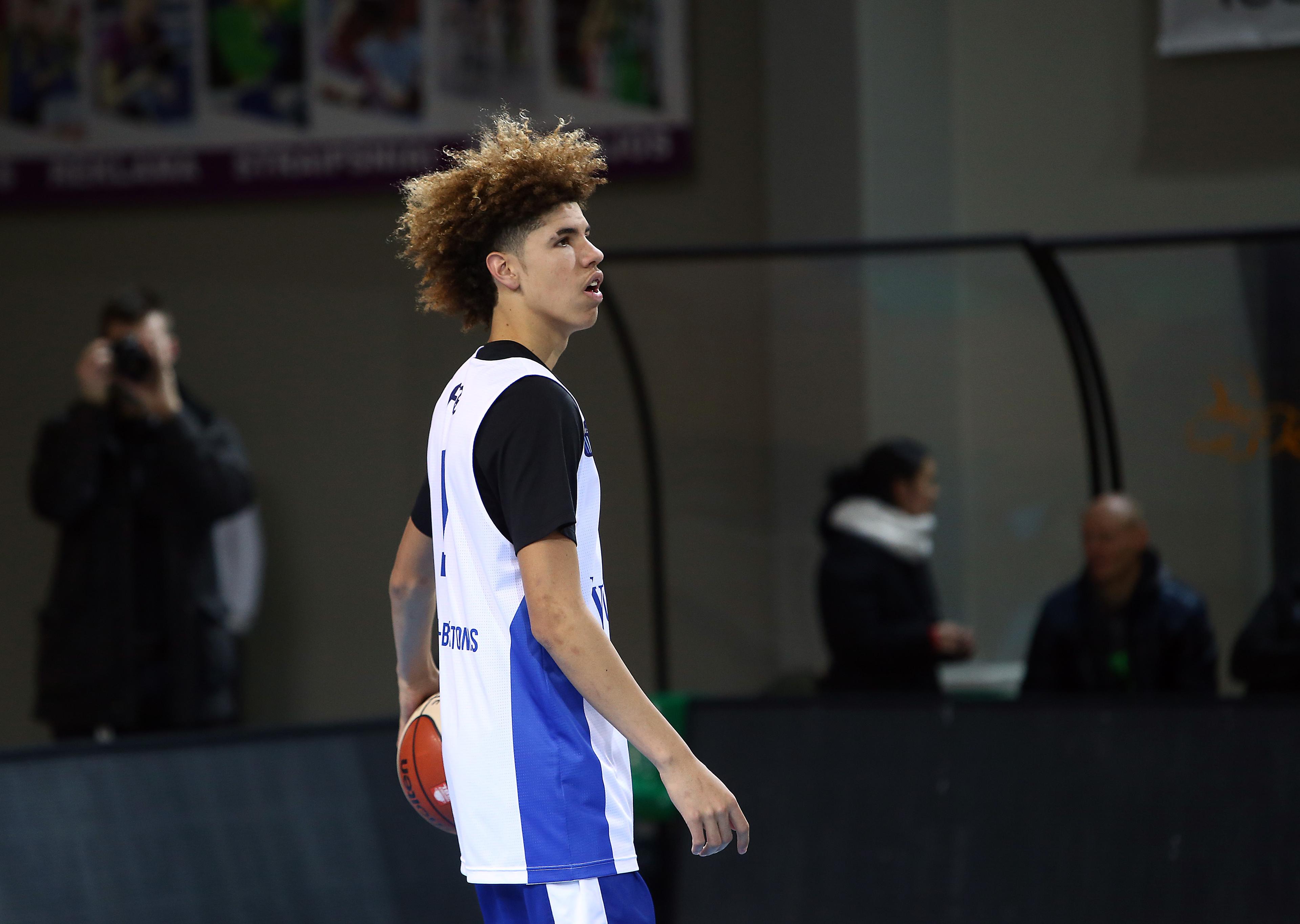 So what did we learn, other than that this Lithuanian woman dreams for LaVar to take over the Oval Office? LiAngelo, 19, started for Vytautas; LaMelo, the more promising of the two despite being 16 years old, came off the bench. Both had decent starts that highlighted what we already knew: LiAngelo (or Gelo) is not, um, terribly athletic, and Melo is a trigger-happy shooter and artistic finisher who can pass the damn ball. Enjoy his first shot as a pro: