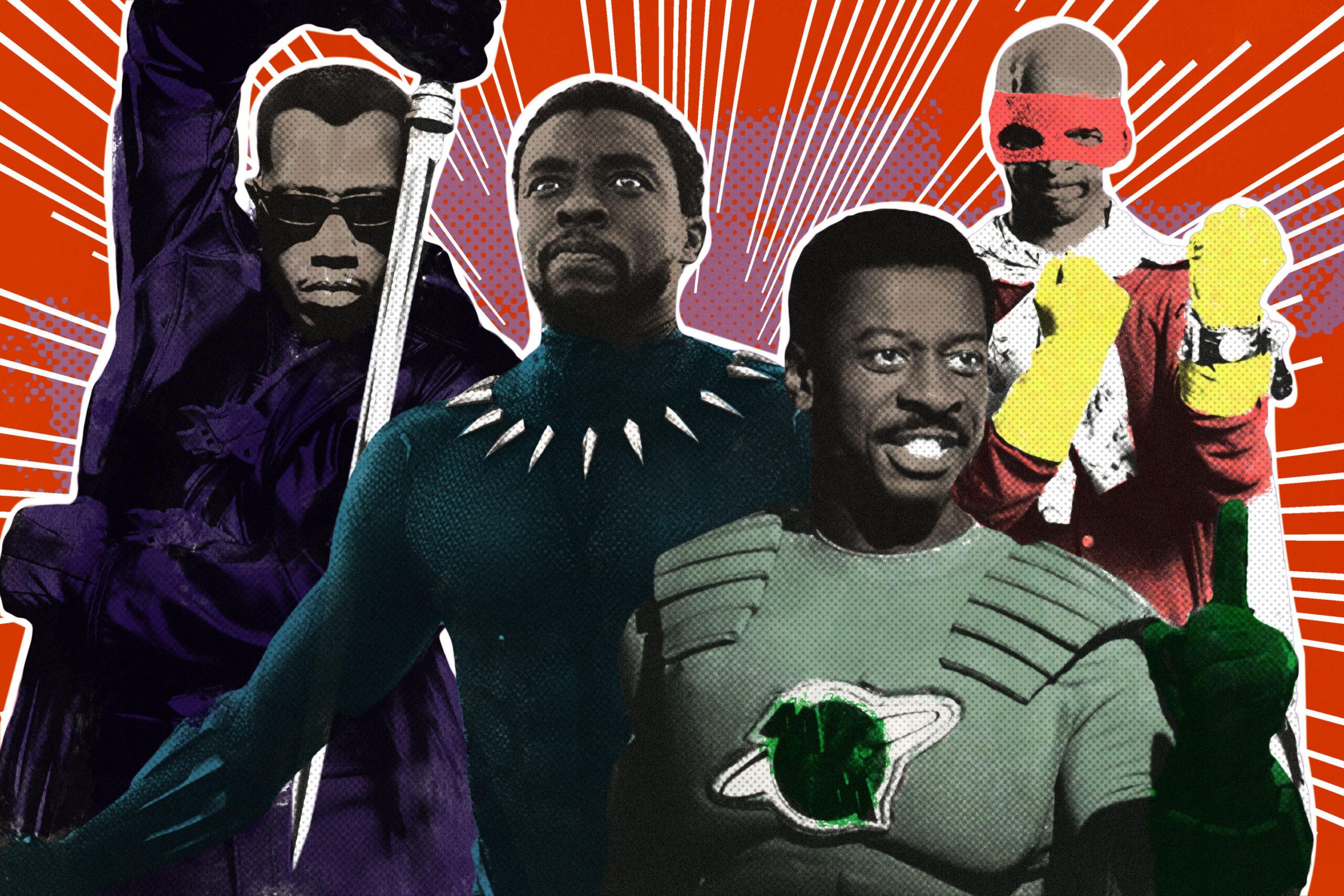 Before Hollywood adapted Blade, Spawn, and Steel from their respective Marvel and DC Comics franchises, the black superhero tradition in TV and film was decidedly less mainstream, even as Hollywood adapted the white comic heroes Superman and Batman into blockbusters for decades before the modern superhero movie boom began in earnest. The black superhero subcategory is formatively defined by two films, both original concepts, both released within a year of each other: the 1993 comedy The Meteor Man, starring and directed by Robert Townsend, and the 1994 comedy Blankman, a classic Damon Wayans joint. Both films are satire more so than sincere myth. In Meteor Man, Townsend plays the D.C. schoolteacher Jefferson Reed, a Good Samaritan who survives getting run down by hoodlums and struck by a meteor, simultaneously, the latter calamity imbuing Reed with various superhuman powers to fight one of Hollywood’s favorite social ills in the 1990s — gang violence. In Blankman — the way sillier movie — Damon Wayans plays Darryl Walker, a dweeb who assembles a colorful assortment of dishrags and pajamas into a costume and wields household implements as his artillery. Blankman fights the mob, seeking vengeance against the men who murdered his grandmother and flooded his city with violent crime, destitution, and political corruption. The meek and janky Blankman isn’t the sort of superhero most kids would want to embody for Halloween. Compared to the gorgeously gory Blade movies, Meteor Man and Blankman are both cheap and cheesy — self-consciously so; Blankman, in particular, is a running meta-gag about how local and DIY the very notion of a black superhero seemed by 1993.