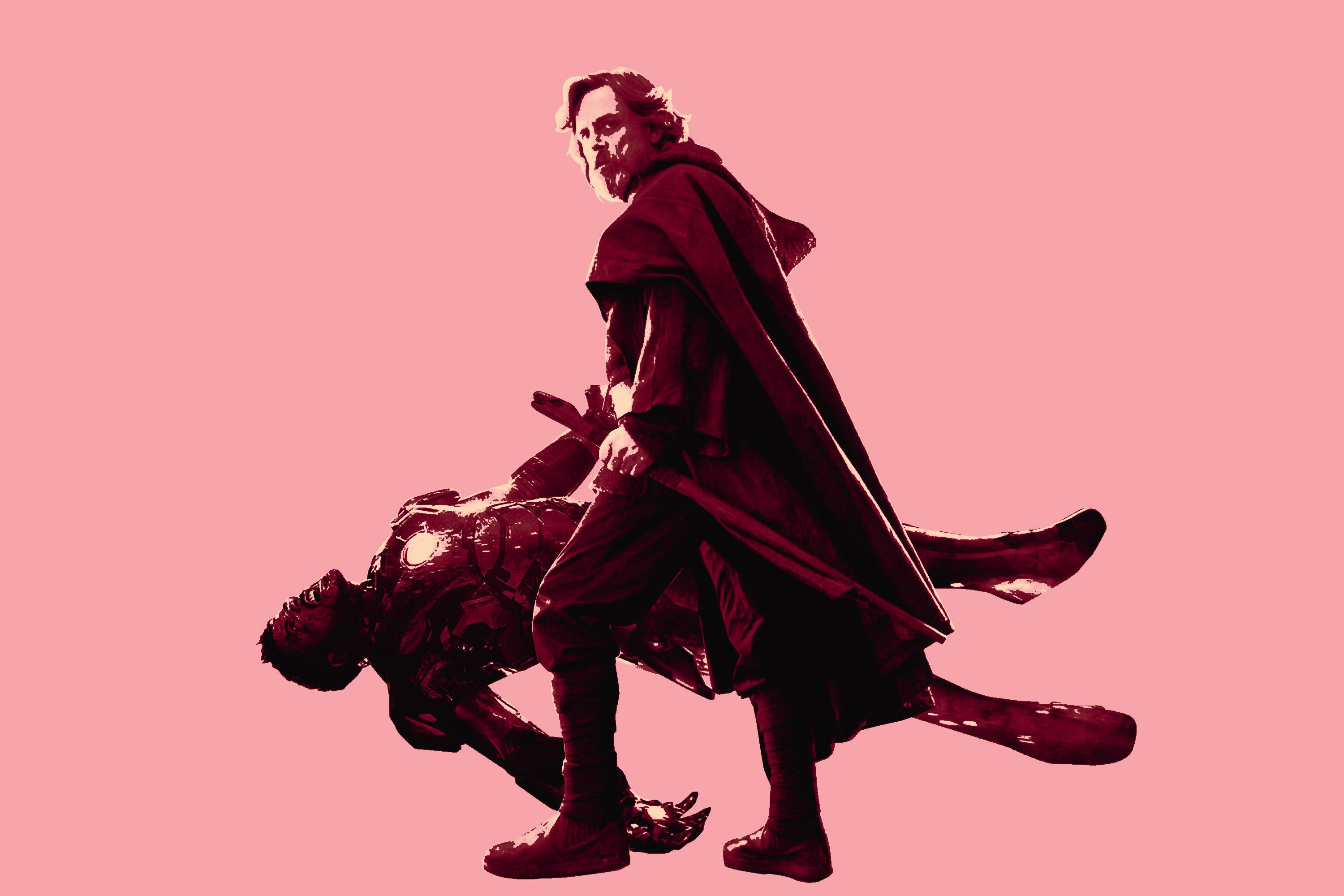The history that both franchises have with their fans, some of whom grew up alongside these characters (don’t ask me about the fine additions to my General Grievous collection), engenders a deep emotional investment. Both franchises have cultivated this relationship for years—through their films, companion books, TV series, and fan conventions. But in Infinity War and The Last Jedi, both franchises deliberately disrupted the history the fan bases held so dear, delivering hefty gut-punches. In Infinity War, the long-hyped villain Thanos successfully acquired all six Infinity Stones, and with the snap of his fingers, eliminated half of the universe’s population—along with a handful of superheroes, including Spider-Man, Bucky Barnes, and Black Panther. The Last Jedi transformed Luke Skywalker into an aggravating, pessimistic, alien-milking, reticent Jedi Master, and that was before he sacrificed himself to save the few remaining Rebels, who could comfortably fit inside the Millennium Falcon. Even Mark Hamill had a hard time accepting his character’s arc. Neither movie left you with a warm feeling—watching both of them felt like walking through a thunderstorm without an umbrella.
