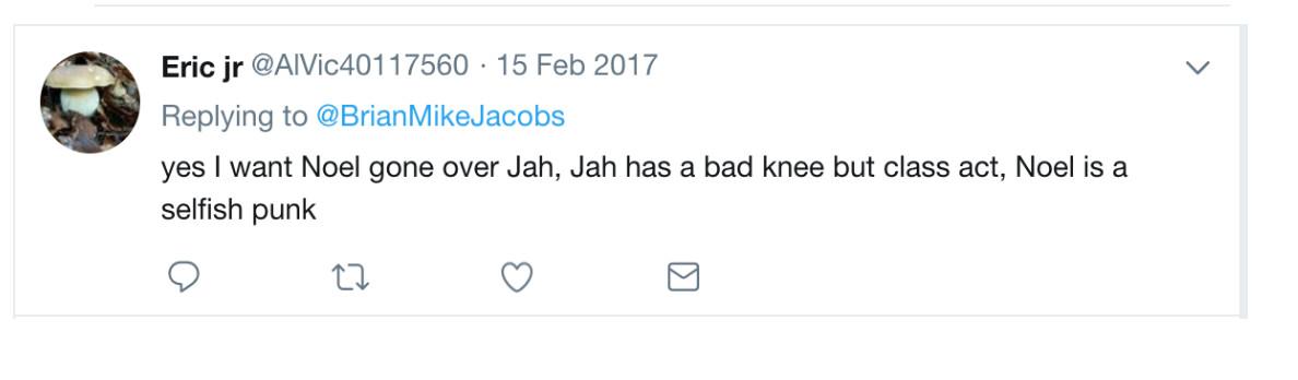“Nothing seems to fall on Ujiri’s shoulders. Why?,” Eric jr wrote in February 2017, in response to a column about a bad Raptors loss. In another tweet, the account suggested that Toronto was successful because of players Colangelo had originally brought in, such as Kyle Lowry and DeRozan. “they are falling apart! Because nothing was done to make them a better team,” they wrote. “Coasting by on ‘trustfund’ money.”