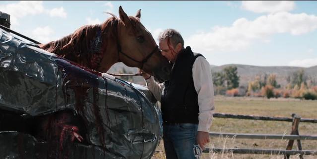 Note: This is the very first scene of the show. Costner’s character, John Dutton, and the horse he was towing have just gotten into a car accident, and if you’re wondering if the horse makes it, then you haven’t noticed the gun in Costner’s left hand. And if you’re now wondering if there’s a close-up shot of Kevin Costner shooting a horse in the head, my answer is you’re sick … but you’d probably like Yellowstone.