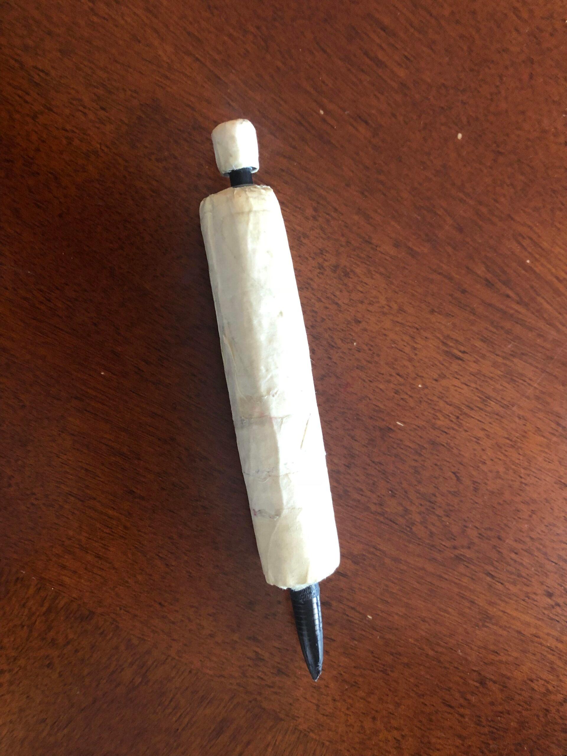 Many players fashion their own buzzers to practice ringing in with at home: Jennings used one of his son’s toys, while many others use ballpoint pens—a memento Speak and the rest of the contestant crew give out at auditions with that in mind. In the weeks before he first went on the show, James fashioned a practice buzzer by wrapping masking tape around a mechanical pencil, below: