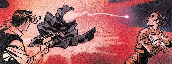 Goodwin suggested constructing a post-Jedi series around an impostor inside the suit of Darth Vader, and Veitch wanted to “put a weak indecisive man inside the Vader costume … and create a tension between the fearsome image and the ‘man within.’” (Sounds familiar.) Lucas, reluctant to tamper with Vader’s legacy, vetoed that too. But, Veitch recalls, Lucas offered an alternative, replying, “If you can figure out a way to bring back the Emperor, you can do that.”