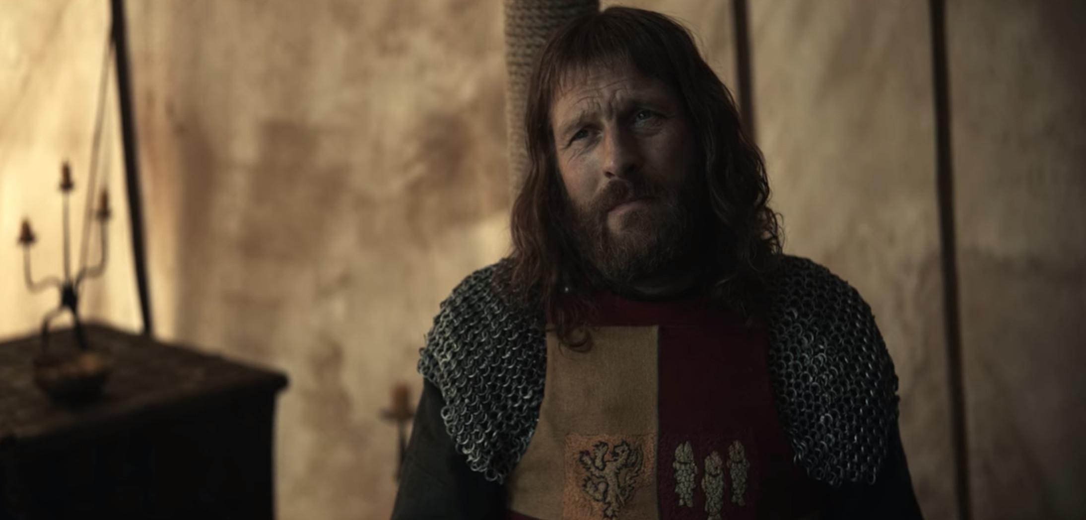 This man is so on trend it hurts. The baby bangs? Flawless. The shoulder-skimming waves? Touchable. The russet beard? Perfectly trimmed. The sad eyes because his son is a huge idiot who is about to ride into battle and die immediately? Well, you can’t have it all.