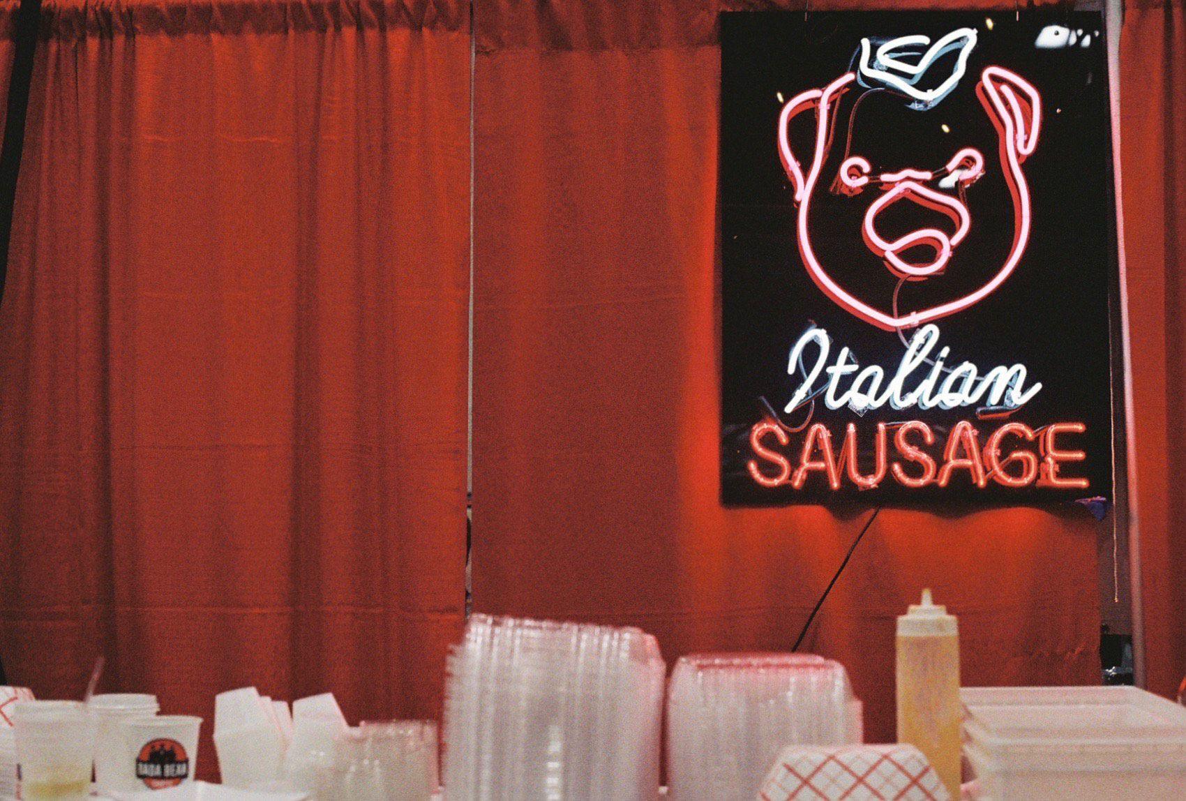 The host of the Poda Bing podcast, which he created to “go a mile wide and a mile deep” on the series, was in front of a mural at SopranosCon that mimicked a wall inside the fictional pork store, sitting at a table covered by a red-and-white checkered cloth. If you’ve seen the Season 1 episode “The Legend of Tennessee Moltisanti”—the one where Christopher gets a little revenge for Spider getting shot in the foot in Goodfellas—you’ll recognize it.