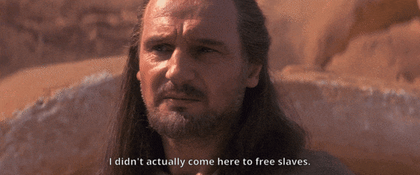 Yes, Yoda said, “Once you start down the dark path, forever will it dominate your destiny.” But maybe Yoda was missing something. It wouldn’t be the first time. He also said, “In this war, a danger there is of losing who we are.” But who the Jedi were wasn’t working. They’ve had a horrible century, but even an ancient order can change. Take it from a slave that a Jedi once refused to free: “You can’t stop change any more than you can stop the suns from setting.”