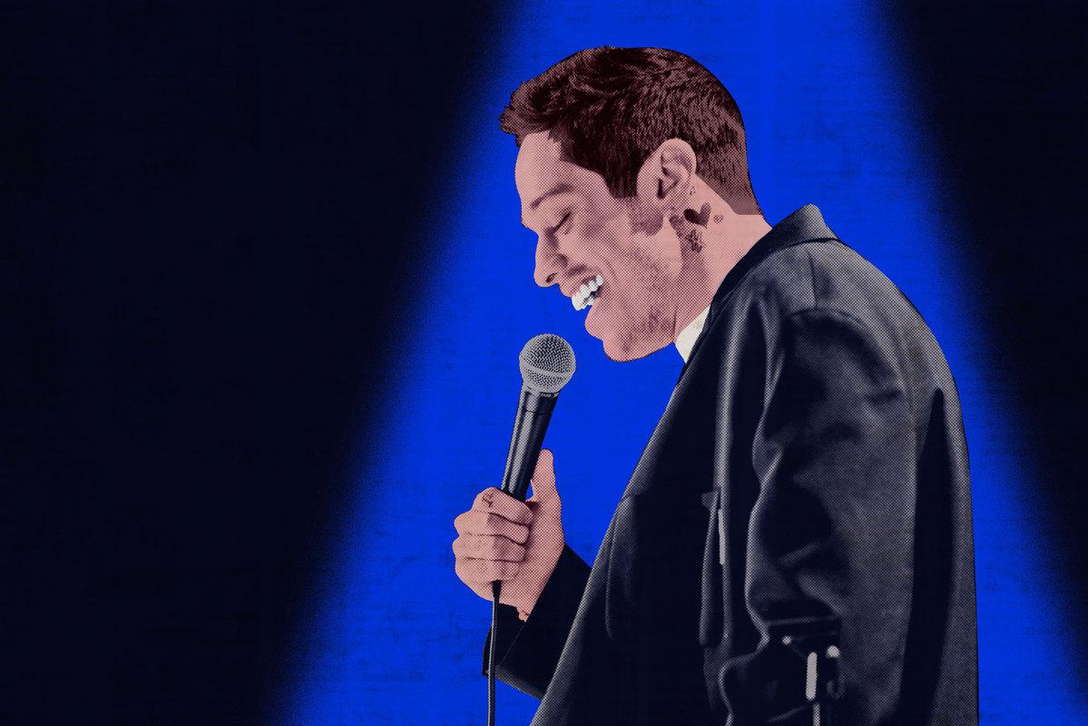 And then Davidson pivots to a riff about jerking off alone in the dark, which is mildly amusing—as a comic, he’s midtier at best, what with the stammering, the awkward pauses, the groaning asides, the rhythmless barrage of uhs and likes—but, again, not quite what we want, which is more gossip-column calamity. Alive From New York, a modest 49-minute set released on Netflix on Tuesday, is less a matter of exquisite stand-up craft than of shrewd content generation, peaking with a vividly gnarly burst of barbed jokes about Davidson’s ex-fiancé, one Ariana Grande. Which is especially what we all want. Right? Right?