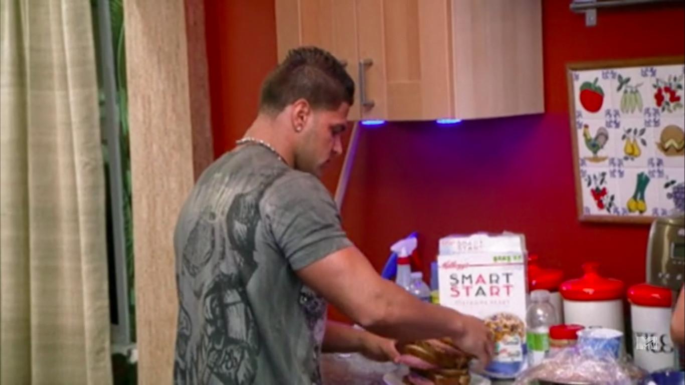 The absurdity of it all. Ron is calmly preparing a 6-inch tall sandwich in the same scene as a life-changing fight; an all-out brawl was spurred in part by a piece of paper that includes the phrase “grinding with multiple fat women”; a two-episode mystery culminates with Snooki hurtling across the kitchen, knocking Ron away from his sandwich. You couldn’t write this shit. Reality TV is great when it enforces the Mark Twain adage: “Truth is stranger than fiction, but it is because Fiction is obliged to stick to possibilities; Truth isn’t.”