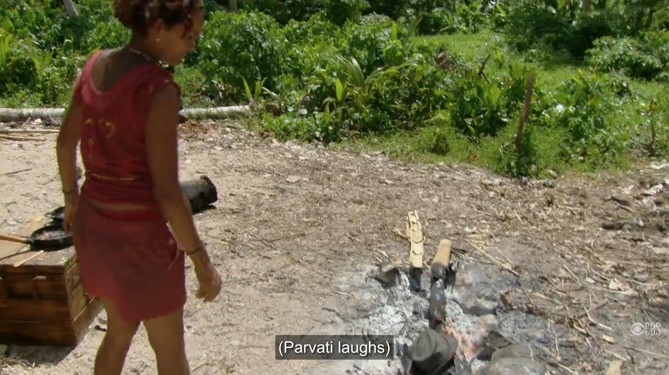 For people who’ve been marooned on an island for the past month-plus, I guess a handful of eggs and some tomatoes feels like the Last Supper. Anyway, the three toast each other, remark on how full they are, and finally lay down on a tarp, with Russell once again commenting on how awesome his gameplay is before scurrying away with only his Survivor-issued Buff on his head, leaving Sandra and Parvati to scheme one last time.