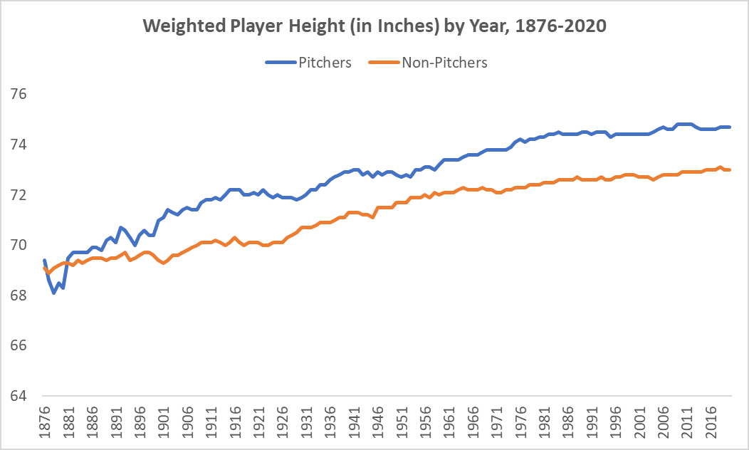 And also before the player population experienced a growth spurt. Modern MLB pitchers, weighted by workload, are almost 6-foot-3, on average, more than 4 inches taller than they were in 1893.