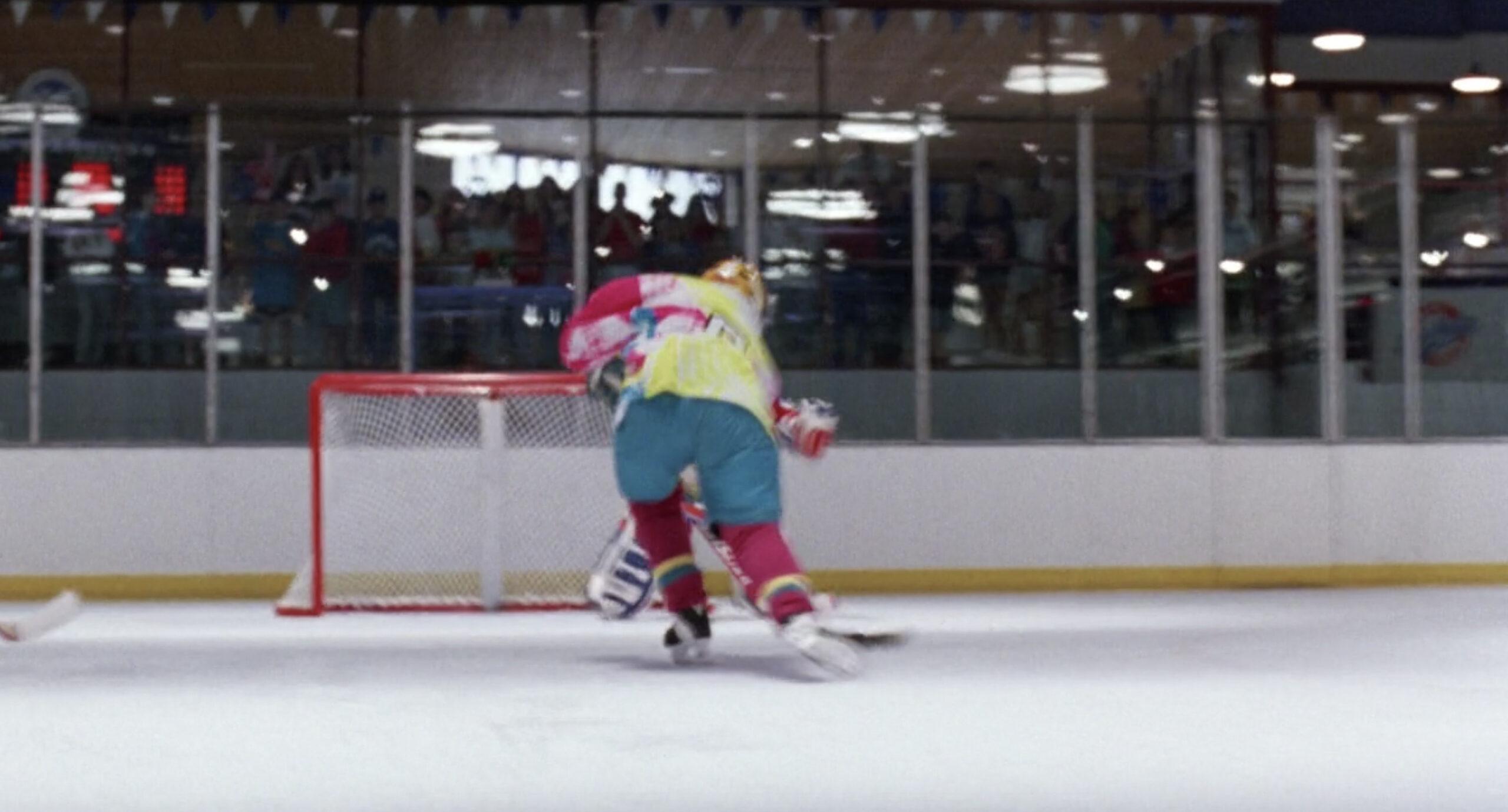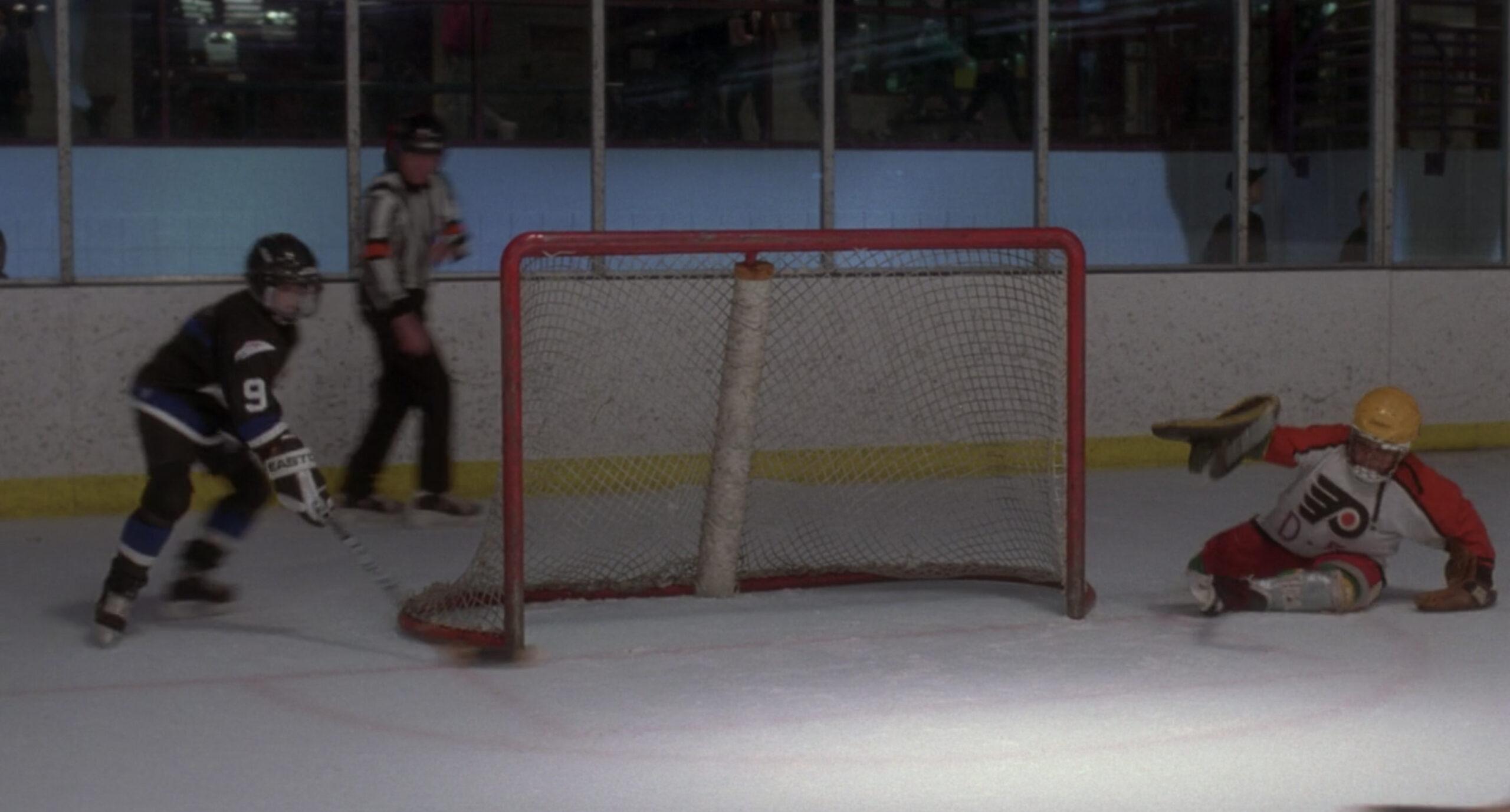 I can barely describe how bad he is. For much of the first movie, it seems he can hardly grasp the concept of goaltending, let alone how to physically do it. The amount of goals against that he’s solely responsible for is mind-blowing. It’s difficult to overstate how frequently he’s out of position. And not, like, in a small way—this kid is leaving the net absolutely GAPING on a regular basis, in all three movies.