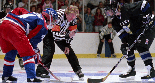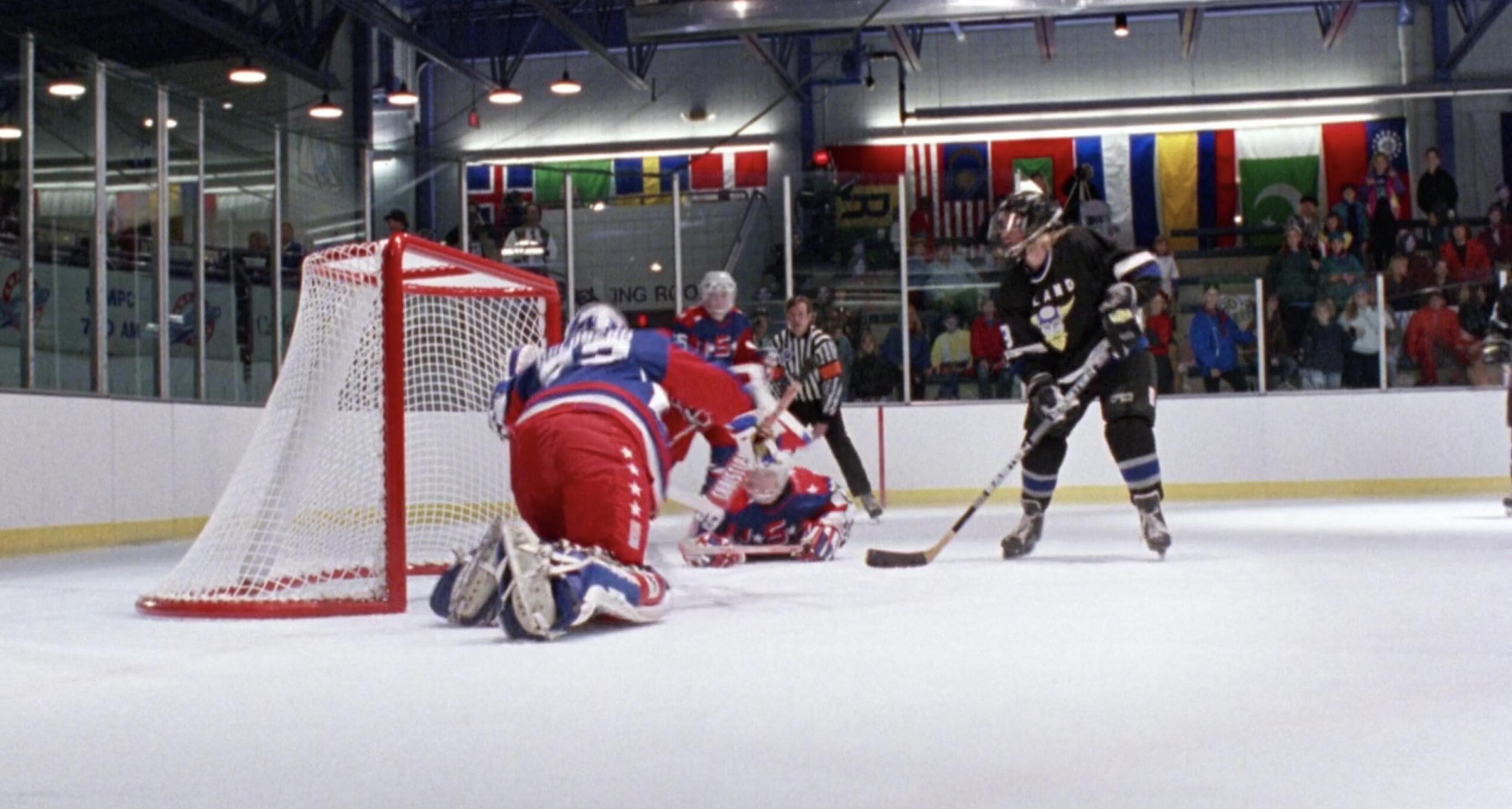 The premise of Russ Tyler (shout-out Kenan Thompson) is that, as good as the Mighty Ducks and their new additions are, there’s a kid chilling in South Central L.A. who’s just as good as them. Seriously—there’s a sequence in D2 in which a bunch of street hockey players teach Team USA how to be good at hockey. (It’s scored by the song that most people now know better as “that ice cream song from the Geico commercial.”) Russ’s secret weapon is, of course, the knucklepuck—an absolutely awesome thing you definitely tried to pull off as a kid, only to learn that it doesn’t actually work in real life. The knucklepuck is basically a cheat code—as Iceland’s coach, Wolf Stansson, understands, the only way to defend the shot is to prevent it from being taken; once Russ gets it off, you might as well put the goal on the scoreboard.