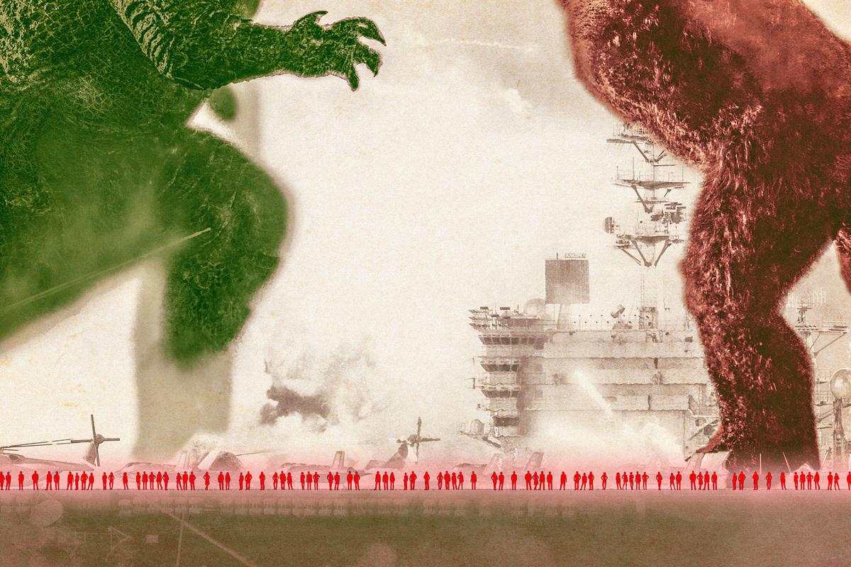 But at the same time, Godzilla vs. Kong couldn’t just be about two monsters who have serious beef: Human characters have to be there to guide the audience between each spectacular set piece. And unfortunately, that’s where these movies fall into a rut. Across four films, countless celebrated actors—Samuel L. Jackson, John Goodman, Sally Hawkins, Juliette Binoche, Kyle Chandler, David Strathairn, Brie Larson, Tom Hiddleston, Bradley Whitford, Charles Dance, Ken Watanabe, and so on—have struggled to find the right tone for monologues about Godzilla sightings in the Pacific Ocean, while also balancing half-baked interpersonal dramas. Whether they’re glorified exposition delivery vehicles or cringeworthy attempts at comic relief, the human characters of the MonsterVerse end up being an unintentional commentary on the underlying theme of these films: Maybe humankind has been the problem all along.