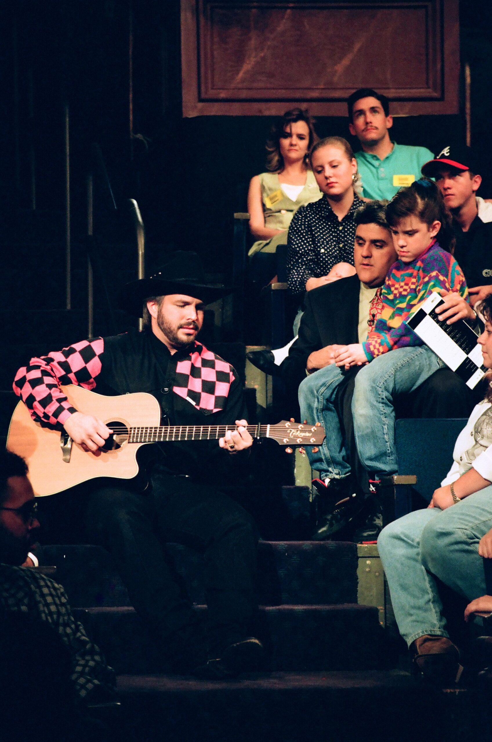 This one is probably my favorite. The audacity of this man, the courage. The cowboy hat might as well be a crown. Jay Leno’s really feeling it. Has Leno cried to “The Dance”? Has he screamed along to “Friends in Low Places”? Does he know the third verse? Has he made his friends listen to “Ireland”?