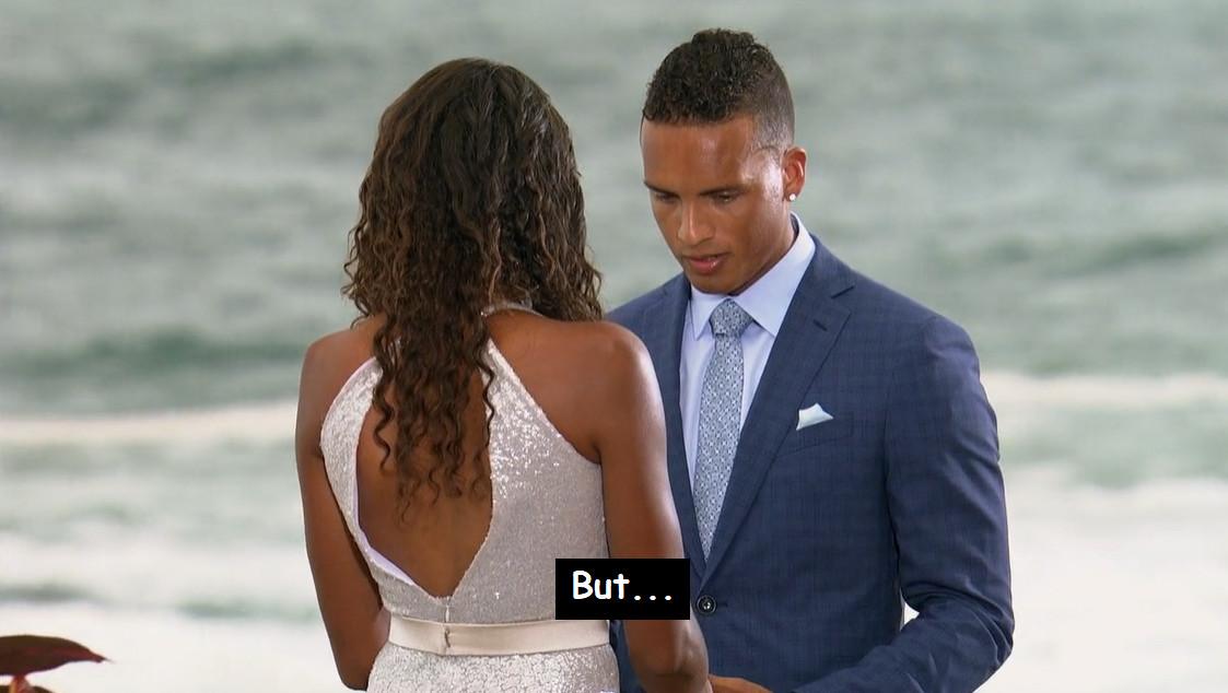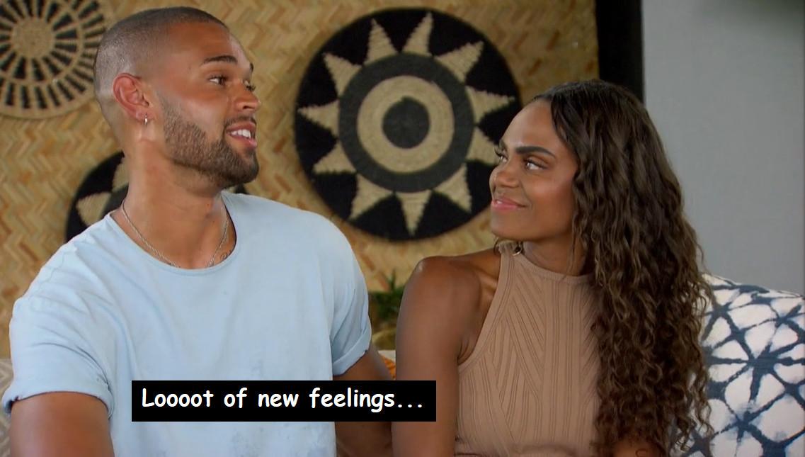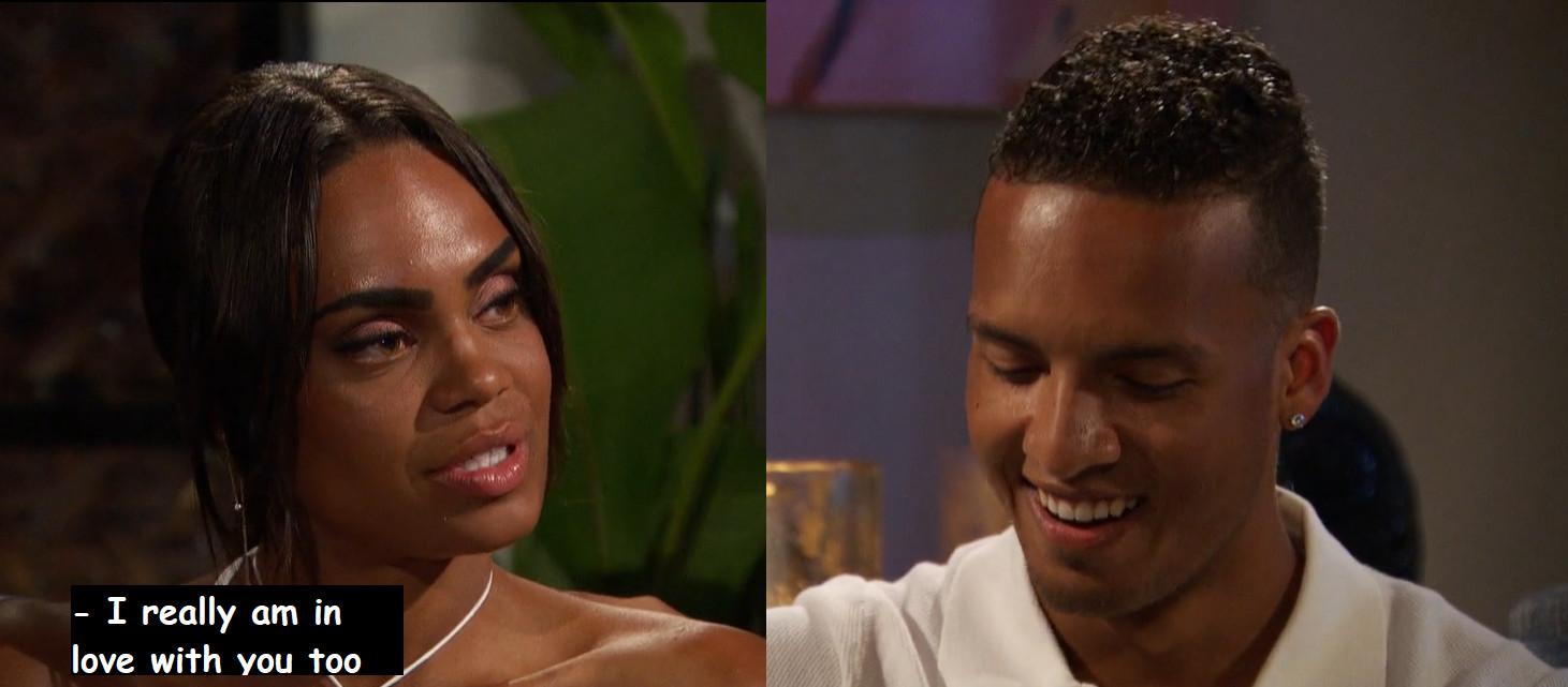 At one point during this finale, Michelle literally asks Nayte if he thinks he’ll “have the words” for an engagement. As in, after choking so hard on expressing his feelings during a low-stakes, spiritually ambiguous bonding ritual that even Hannah Brown was like, “Oof, dude, maybe cruise through a Toastmasters course at the YMCA or something,” Michelle wondered not just if Nayte was ready to get engaged, but if he would technically be able to string enough sentiments together to reasonably ask for her hand in marriage.
