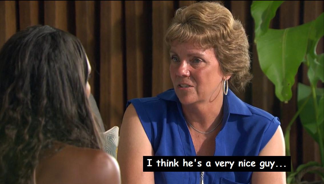 Through the past few weeks, there’s been a clear effort by the editors to frame Nayte as a walking red flag, and it hasn’t felt entirely warranted. Nayte obviously has some self-exploration to do before he’s in league with Michelle emotionally, but he isn’t manipulative; he isn’t misleading Michelle about his feelings. So it’s a weird move by the franchise—though certainly not a new one!—to frame their front-runner as the wrong choice on a show that is ostensibly about fostering fairytale romances. But there’s also no denying that Michelle’s family notices Nayte’s less-than-desirable traits too—and LaVonne and Ephraim don’t strike me as people who would take their cues from producers.