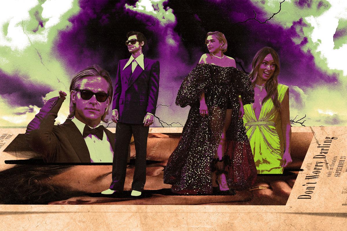 You probably haven’t yet seen Don’t Worry Darling, the second film directed by Olivia Wilde, but you’ve almost certainly heard about it. The film became the subject of TikTok-fueled rumors of on-set tension between Wilde and star Florence Pugh as far back as 2021. Since then, the stories of behind-the-scenes troubles have multiplied, picking up subplots involving infidelities, he said/she said accounts of cast changes, and a video of Harry Styles maybe-but-almost-certainly-not spitting on Chris Pine that’s been studied with a Robert Langdon–like intensity. At this point the movie itself feels like an afterthought, a still nucleus surrounded by buzzing electrons that set off one unstable reaction after another.