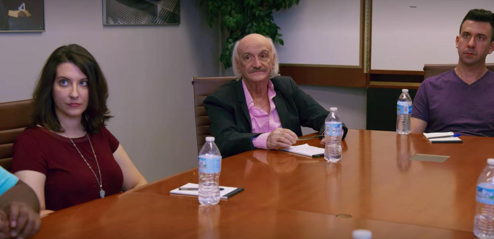 After their boss leaves the conference room, members of this work team start surfing, dancing, spinning chairs to create whirlpools, and cracking open multiple cans of seltzer water to spray ocean mist. Tim Robinson’s character, Russell, isn’t in on the fun at first, until he literally flips the table to create a “big wave!” as only Tim Robinson can. This is followed by a variety of laughable exclamations in the midst of the chaos, like “Napkins, napkins!,” “I need a wet paper towel!,” and “Fucking psycho!” It is yet another ITYSL story about a man who does not fit in, trying disastrously hard to do so.