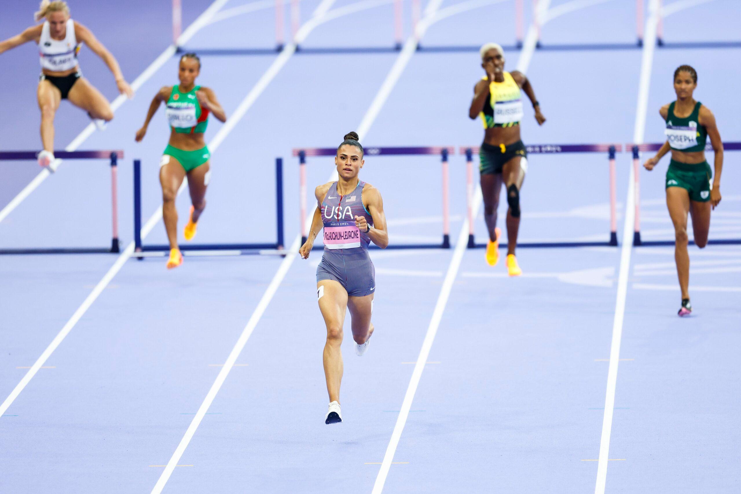 Competitively, the impact of the shift has been staggering. At the Tokyo Olympics in 2021, Sydney won her first individual gold, becoming the youngest medalist in event history. The next year she won her first World Championship in Eugene, Oregon, setting a new world record and beating her longtime rival Muhammad by two and a half seconds. Two years later, she broke her own world record, the first in a series of milestones. Today, six of the top 10 race times in the event belong to her, despite the fact that times are going down all over the sport. Her most recent personal best, set in June during the U.S. trials in Eugene, would’ve been only a little over a second off the medal stand of the women’s flat 400-meter in the Tokyo Olympics. She’s continued that dominance in Paris: On Tuesday, she beat the second-closest competitor in her heat by 1.5 seconds as she qualified for the finals.