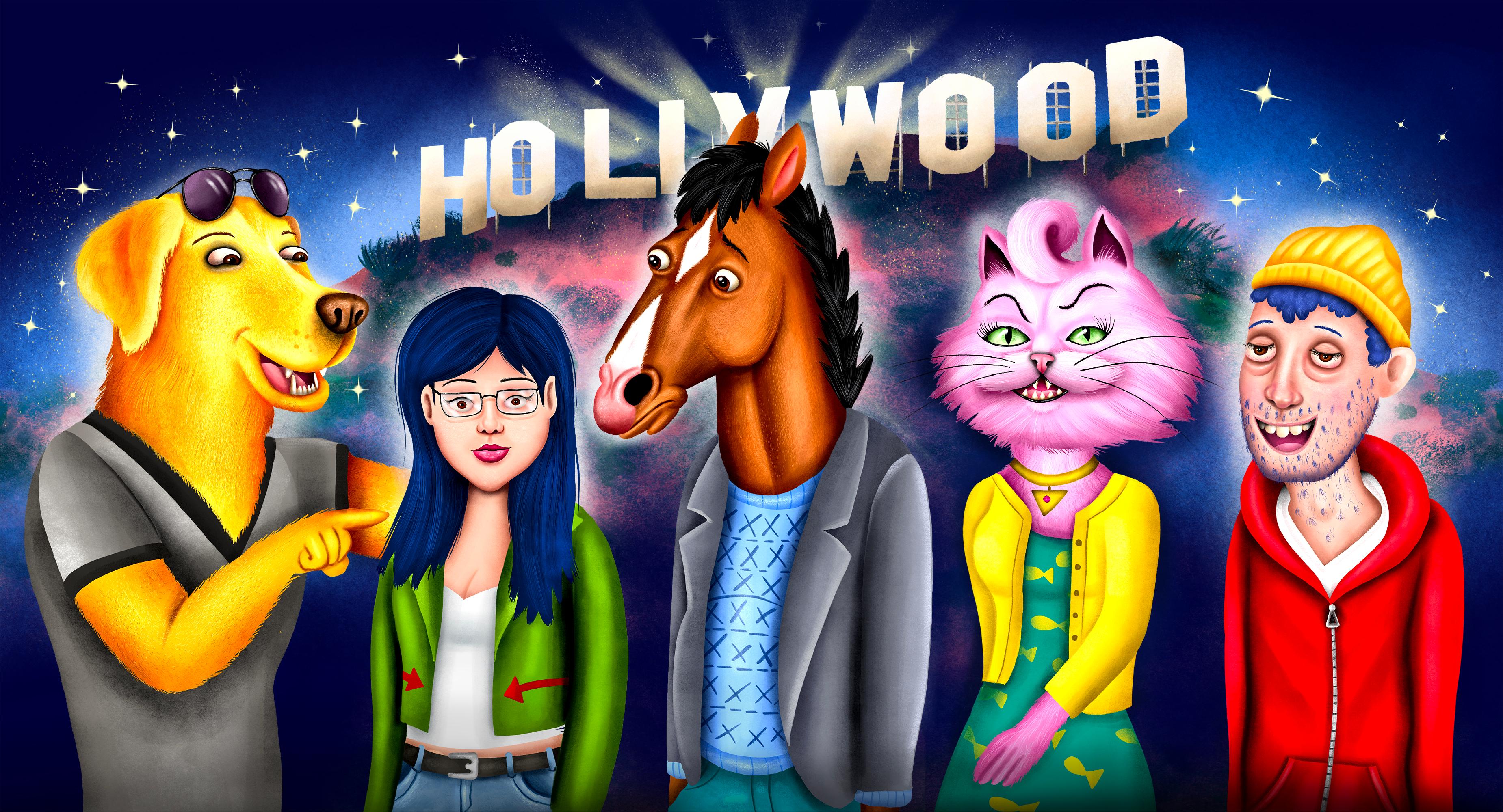The scene, more or less, was ripped from Bob-Waksberg’s life. When he was new to L.A., he’d hike Griffith with friends, look out at the city, and snarkily wonder about the future. “We used to say, tongue planted firmly in cheek, ‘Someday we’re going to own this town,’” he says. “That was the thing we would do. We were like characters on Entourage.” Or The Lion King. “One day,” he adds with faux gravitas, “everything the light touches will be yours, Simba.”