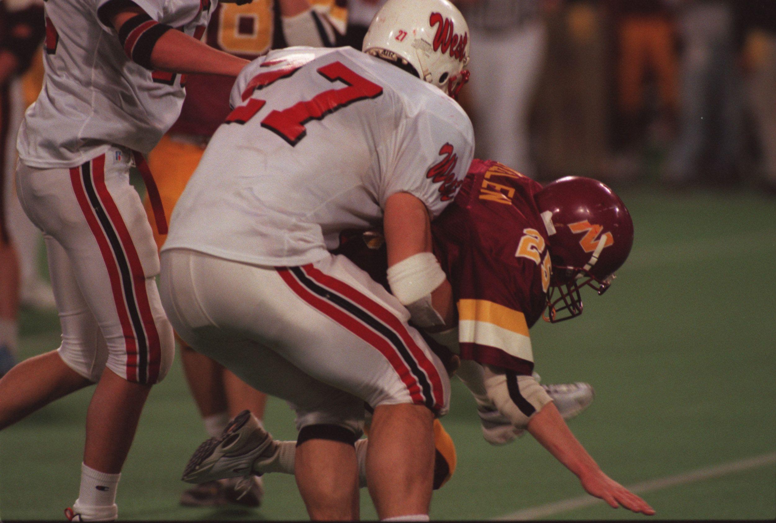 The Scarlets knew that their offense had enough talent to compete with anyone. And with a defense built around Stenzel, now a dominant linebacker, and led by Walz, they believed that side had the potential to do the same. West’s defense ran a 4-4 scheme that was geared toward stopping the run. (In a state where teams had to prepare for snow games in October, most every school built its offense around the run.) Nick Wiest remembers how Walz drilled into the inside linebackers’ heads that on every single play, their job was to read the opposing guards. “The quarterback and the running backs, those are your girlfriends,” Wiest remembers Walz saying. “The guards, they’re your mom.”