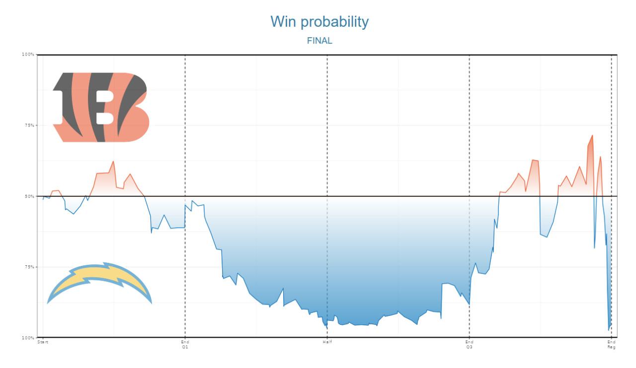 The Chargers ending up on the right side of this win probability chart from rbsdm.com is the clearest sign that Jim Harbaugh has changed the culture in Los Angeles.
