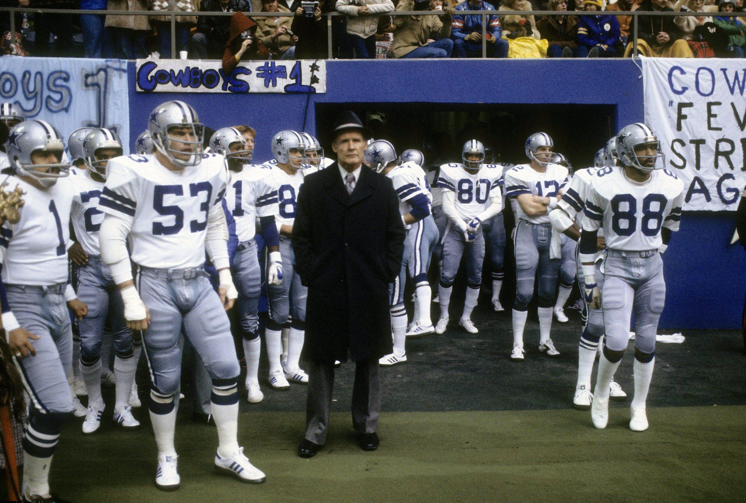 The first age of the empire carried with it more than plain gridiron success. The Cowboys won more games than any other team in the 1970s—they maintained a .729 regular-season win percentage and made five Super Bowls, winning two of them. They picked up the alias America’s Team in a grainy NFL Films highlight tape after a Super Bowl loss in ’78. (Though there’s been some recent conjecture about whether they were even the league’s first choice for the title.) “They appear on television so often,” the clip goes, “that their faces are as familiar to the public as presidents and movie stars.” It was not hyperbole.