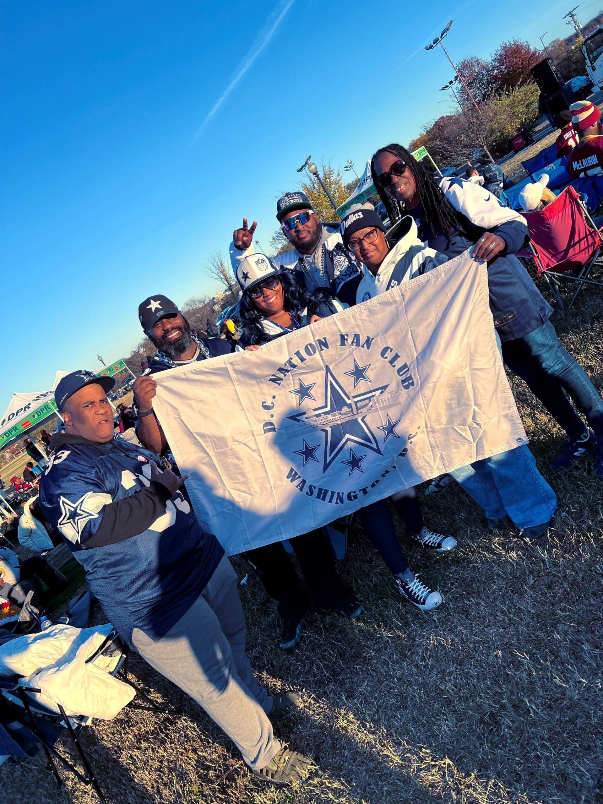 A DMV native, Kelli grew to love the Cowboys while watching them as a 5-year-old with her grandfather. She’s one in a colony of fans in the nation’s capital who cheer for the Cowboys rather than for the Commanders, in part because of the history of racism in Washington under founding owner George Preston Marshall. Kelli runs the largest Cowboys fan club in D.C., a collective of 30 total members. When we met at the bar, she was wearing a matching Dallas camo hat and hoodie and was eventually joined by two other members of their group, one in a CeeDee Lamb jersey named Noel and another in a Trevon Diggs jersey named Gary.