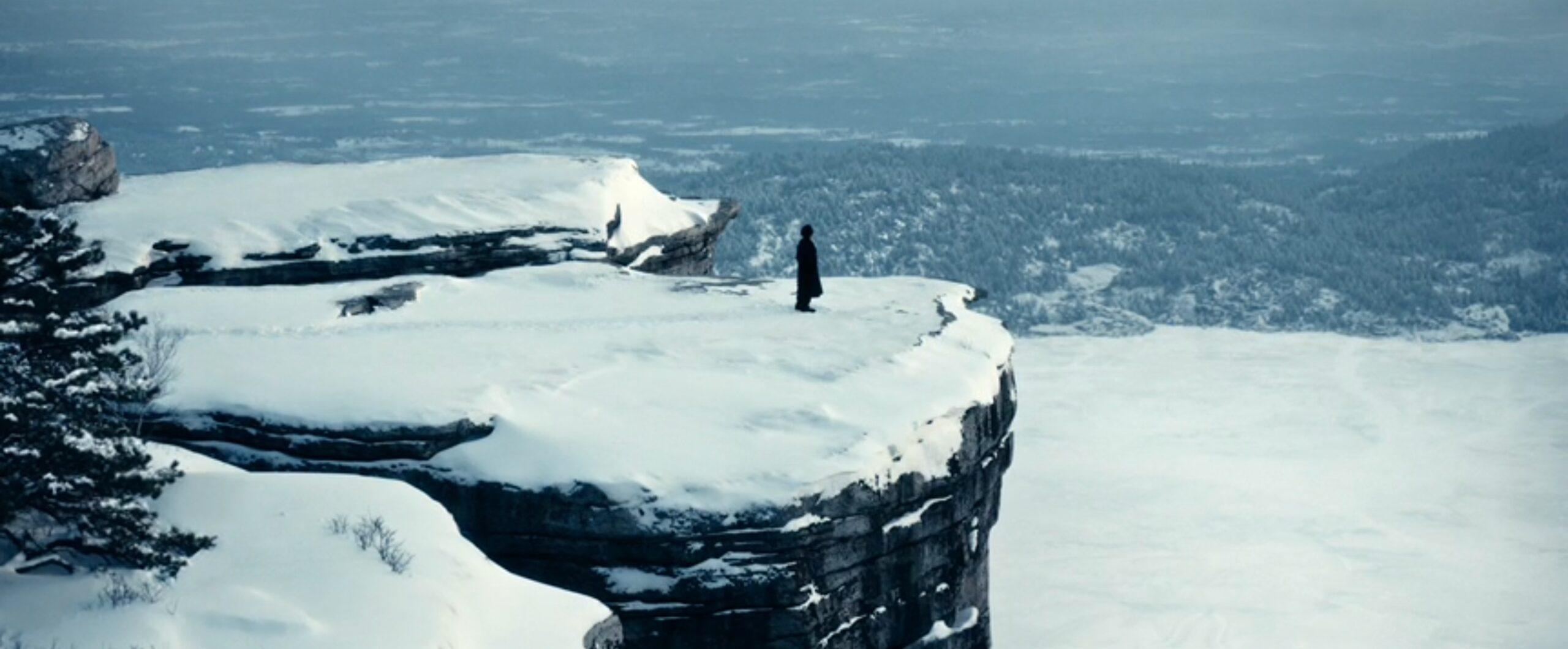 But my real point of contention is that Irving didn’t freeze to death despite spending the night outdoors. Now, we have no idea what the temperature is, but with all that snow and Irving beginning the episode standing on a frozen lake, I’m going to guess: Really Fucking Cold. The next morning, however, Irving is completely fine—not even any frostbite. (I’m happy he survived the night, but seriously, he should look like Jack Torrance at the end of The Shining.) But the best evidence I can offer is when the characters originally convene on a cliffside where Mark is waiting: