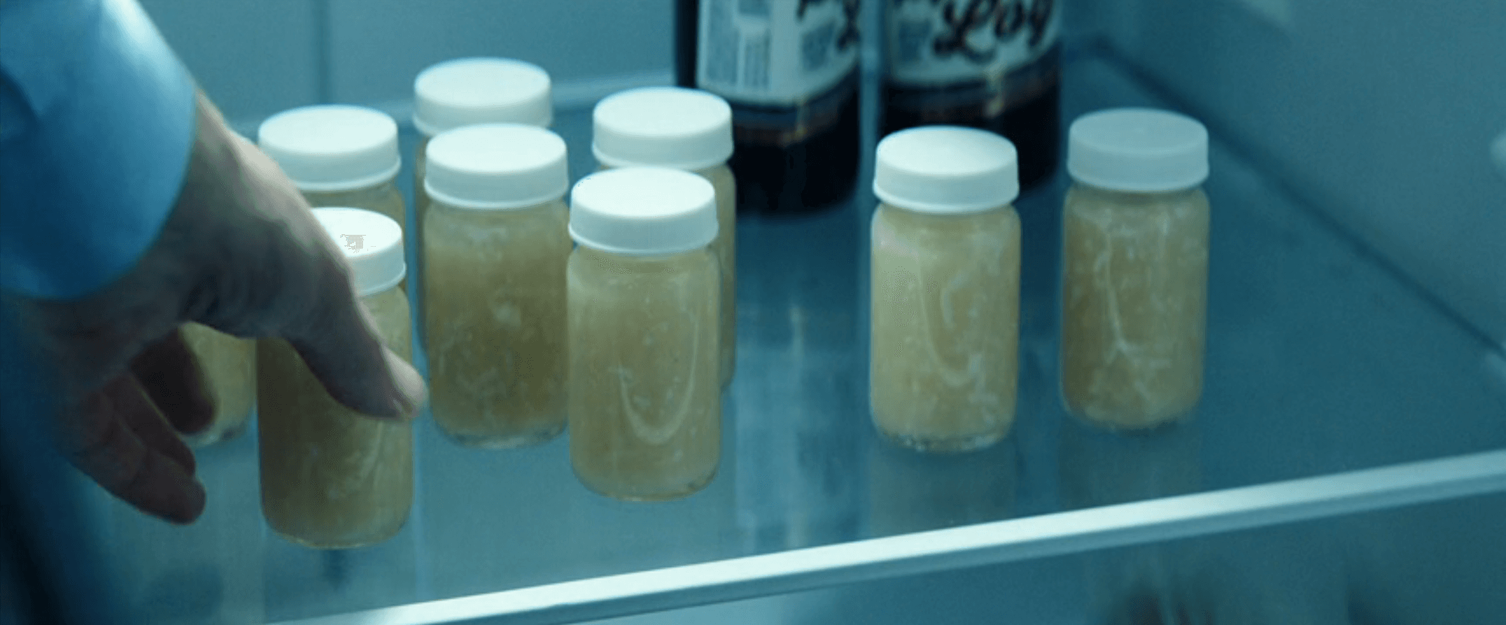 I’ve done some ill-advised juice cleanses in my day, but none of them resembled egg drop soup. This, it would appear, is the concoction that we see Mark spilling in the show’s opening credits, and watching Mark take a sniff and a sip is somehow grosser than when we saw Dr. Reghabi performing the ad hoc surgery on his brain that I assume has necessitated these beverages. (Which he seems to be … chewing?) Speaking of the good doctor: Reghabi has been living at his place because she can’t be seen coming and going all the time.