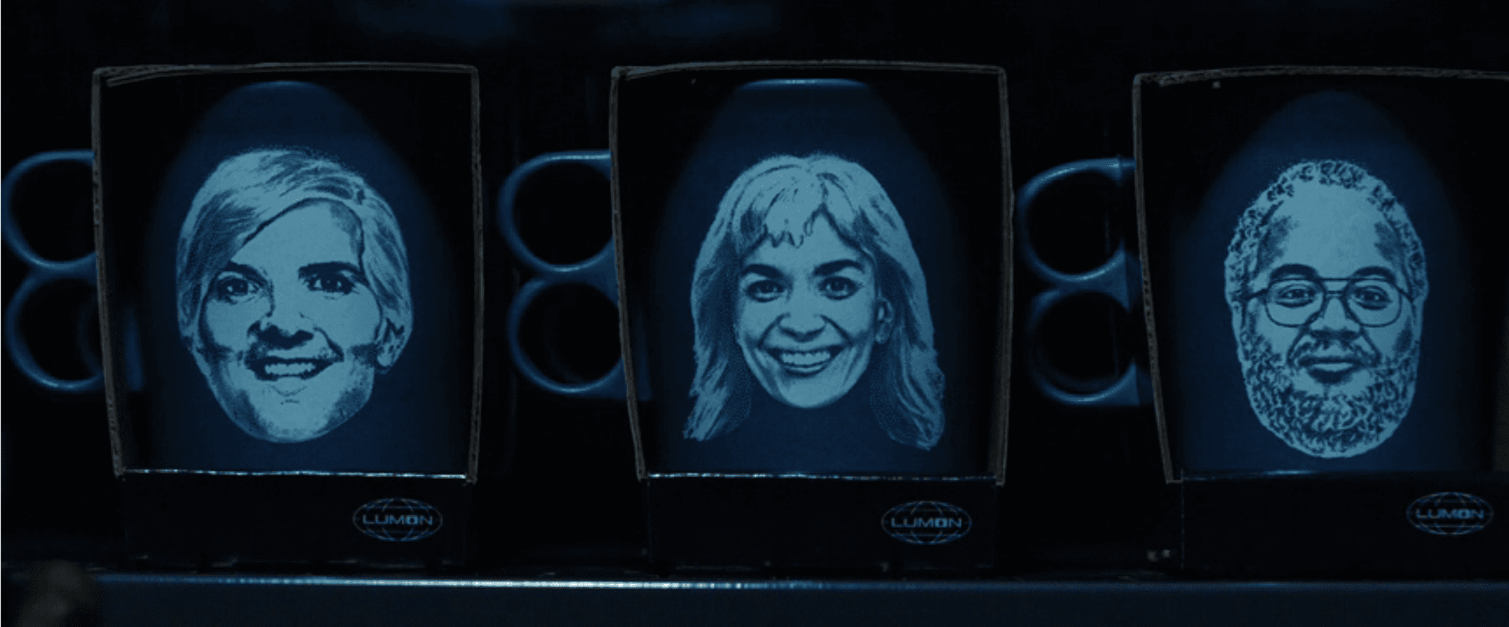 I like how the little portraits of Lumon employees that they have at the ready for printing—on marshmallows, balloons, and funeral mugs alike—have the vibe of those Wall Street Journal stipple portrait hedcuts, Dylan’s in particular: