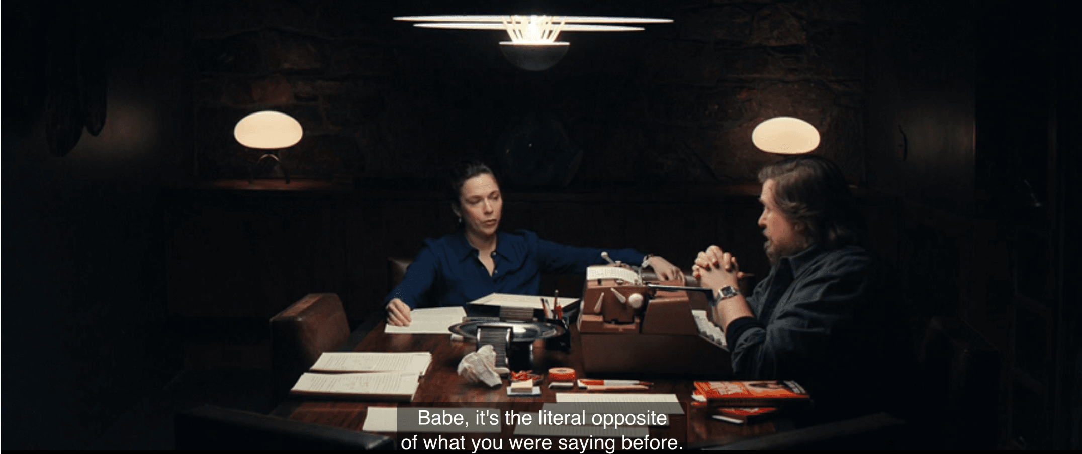 We then see Helena, looking put-together following her near-death experience in the wilderness, sitting across the Lumon conference room table from Natalie and Mr. Drummond. The words “contretemps,” “your tempers will rebalance quickly,” and “arrange another obligement session this evening” are bandied about with various degrees of condescension. Natalie says that they’re close to getting what they want from innie Mark. And then she makes a silent-film-grade funny face when Helena protests that she will not be going back down to the severed floor to help.