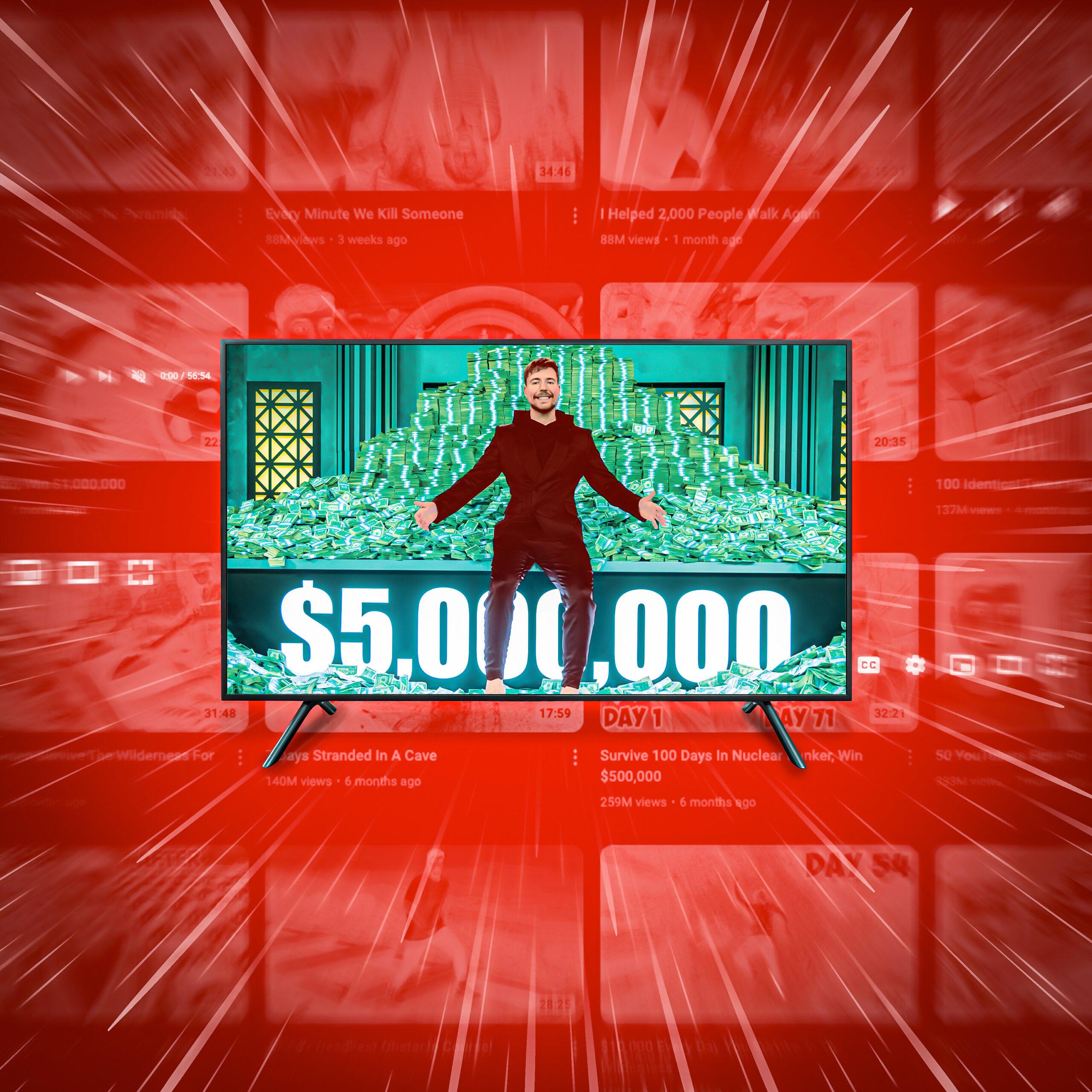 Nineteen seconds. That’s how long it took on my TV to switch from MrBeast’s channel on YouTube to Prime Video, type in “B,” and click on the suggested tile for Beast Games, the reality/game show created and hosted by the selfsame MrBeast. In less time than it takes Beast, née Jimmy Donaldson, to dispense some enormous sum of money, I navigated the divide between YouTube and traditional TV. (Assuming a streaming service owned by a Big Tech titan counts as “traditional.”)